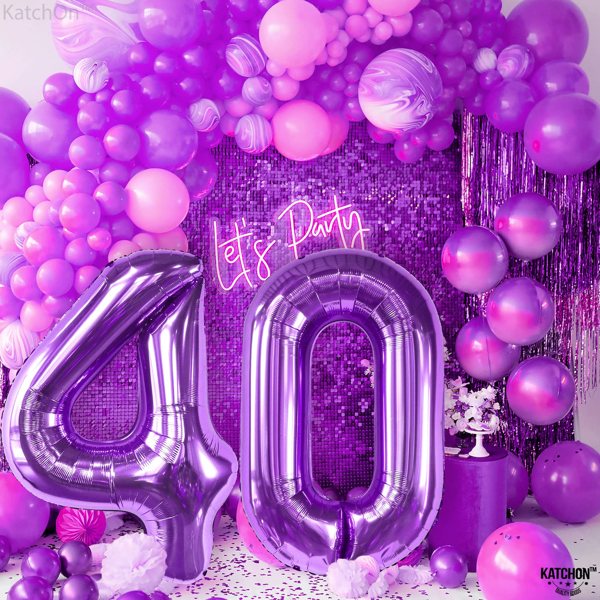 Looking for a fabulous 40th Anniversary or 40 year old birthday decorations girl? make it count with our beautiful purple 40 Number Balloons Do you want to surprise your partner on your 40th wedding anniversary or Happy 40th Birthday Decorations for Women? Or Celebrate an event in your office or at home? Then these purple Balloon Numbers 40th birthday balloon arch is perfect to make a statement to your birthday decorations, anniversary party.