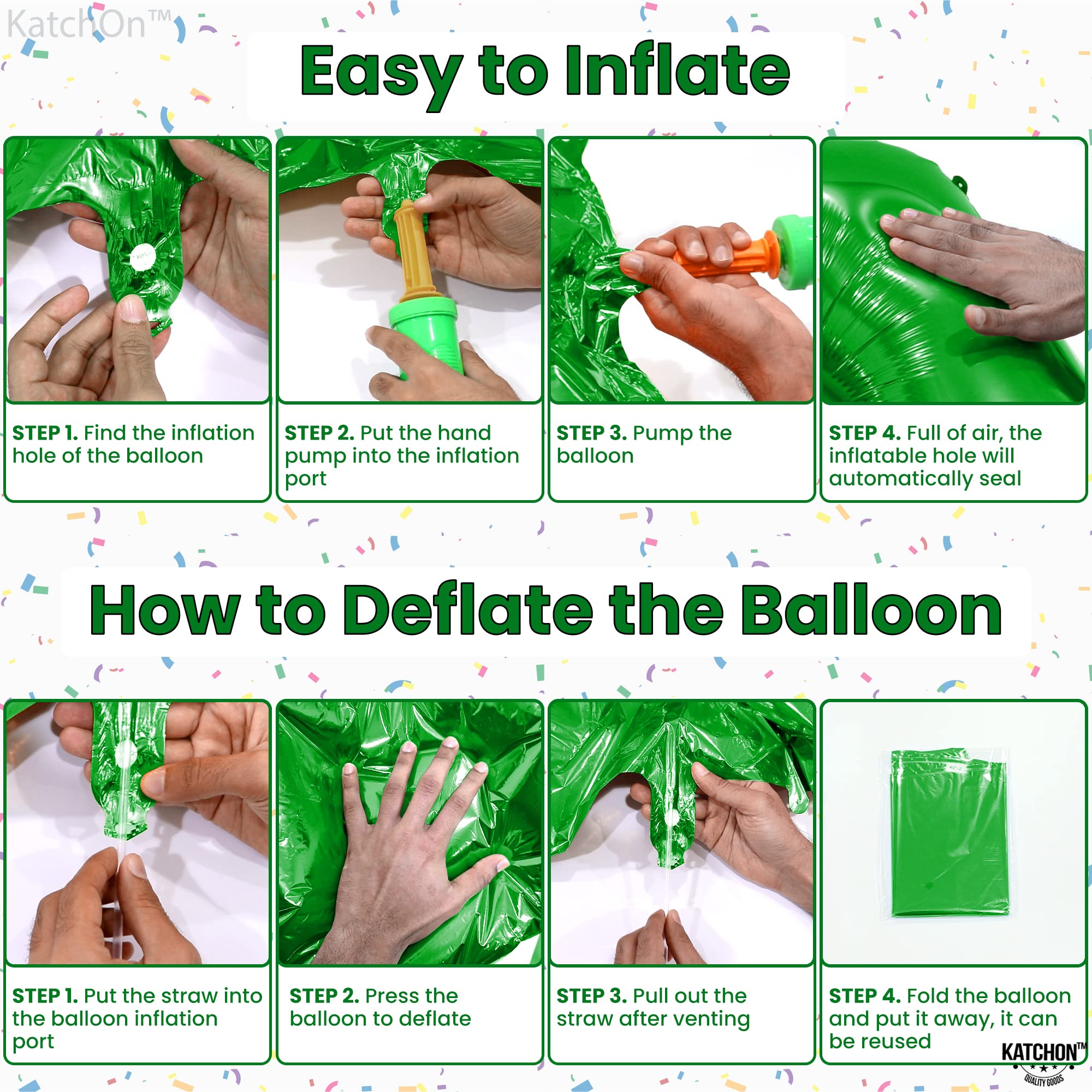 1) Large Number 10 Dark Green foil Mylar Balloon - 40 Inch, Pack of 1 2) Green Ribbon - 1m 3) 1 Straw to inflate Number 10 Baloon