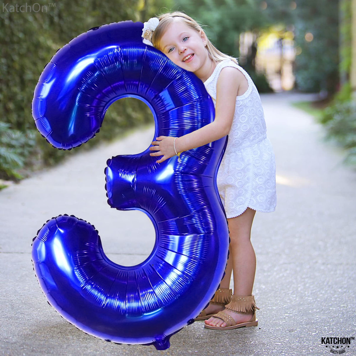 KatchOn, Giant Royal Blue Number 3 Balloon - 40 Inch | Navy Blue 3 Balloon Number | Construction Balloons 3rd Birthday Decorations for Boys | Anniversary Decorations