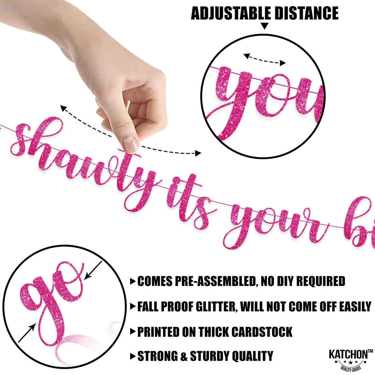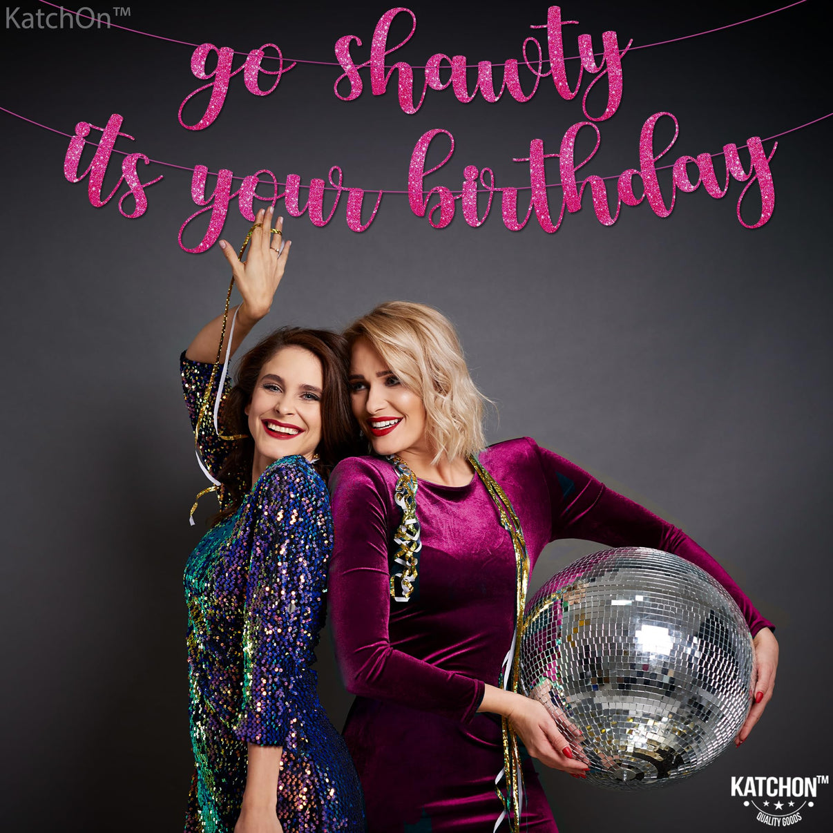 KatchOn, Go Shawty Its Your Birthday Banner - 10 Feet, No DIY | Glitter Pink Birthday Decorations for Women | Funny Banner for Women | Pink Go Shawty Its Your birthday Decorations for Girls