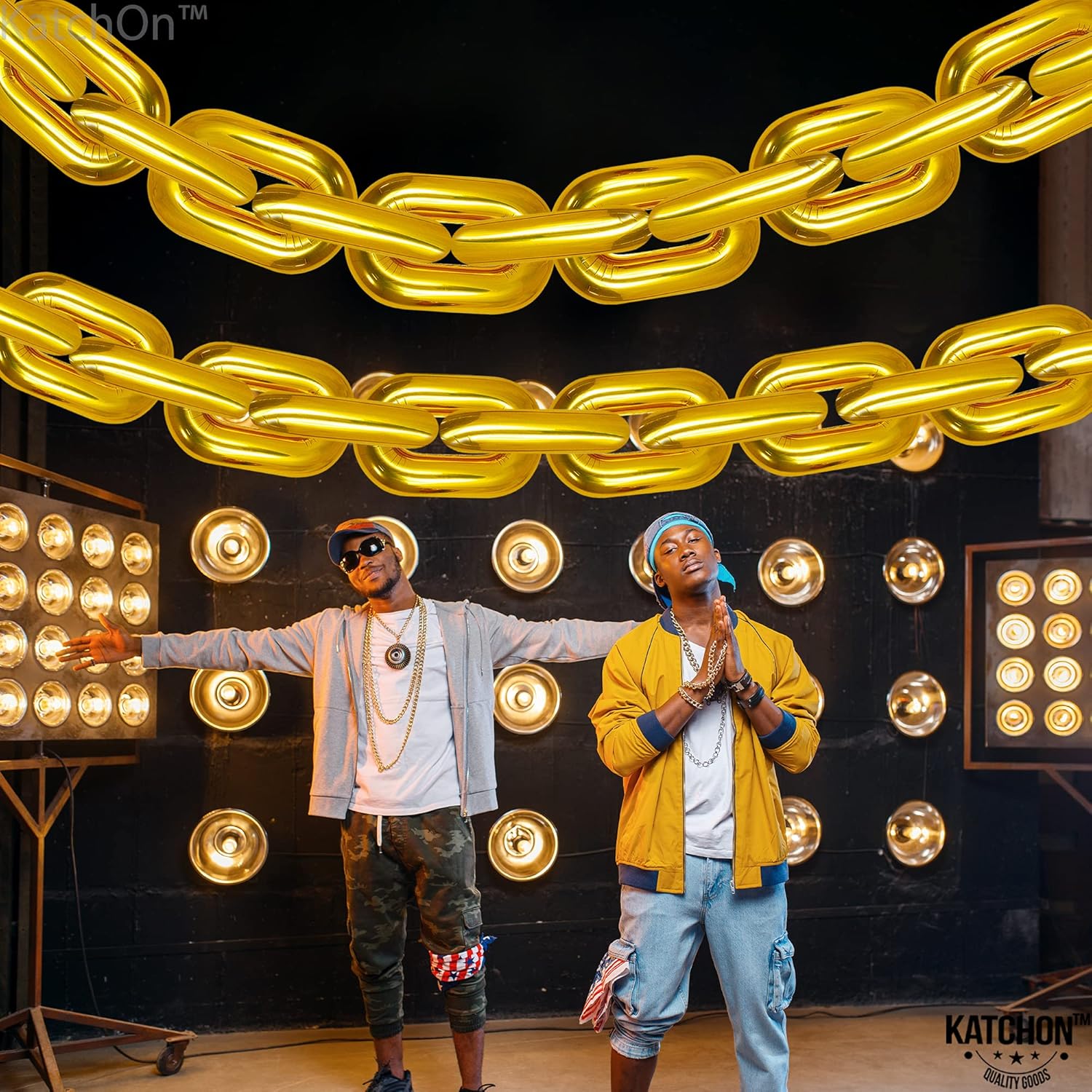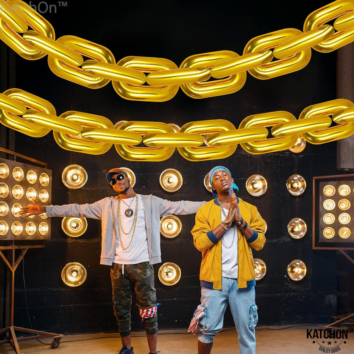 Hip hop chain balloons can make an amazing photo with giant 40 inch gold chain balloons will take you back in time and release the energy of the '70s
