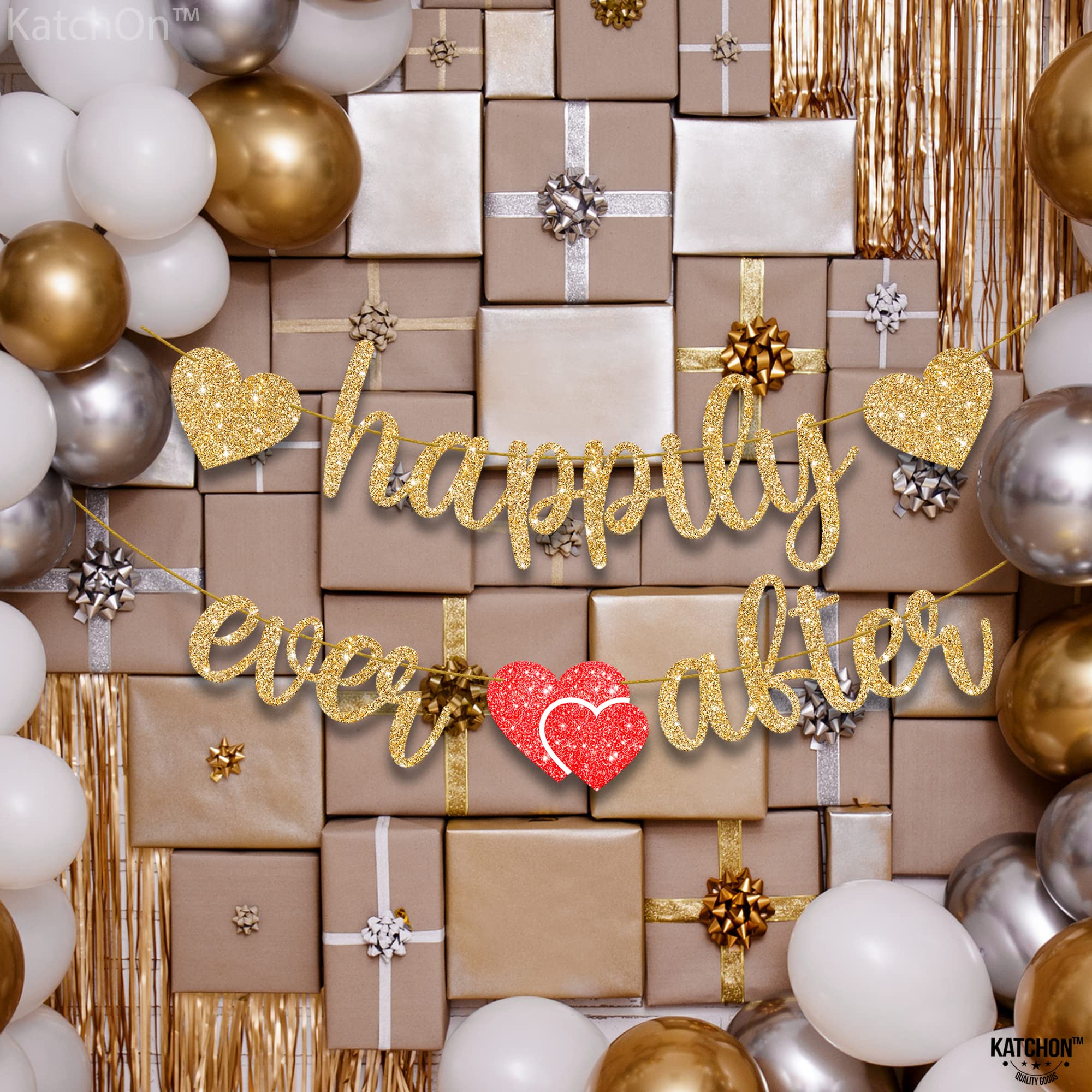 1.) Gold and Red Happily Ever After Banner: Glitter, 10 Feet, No DIY