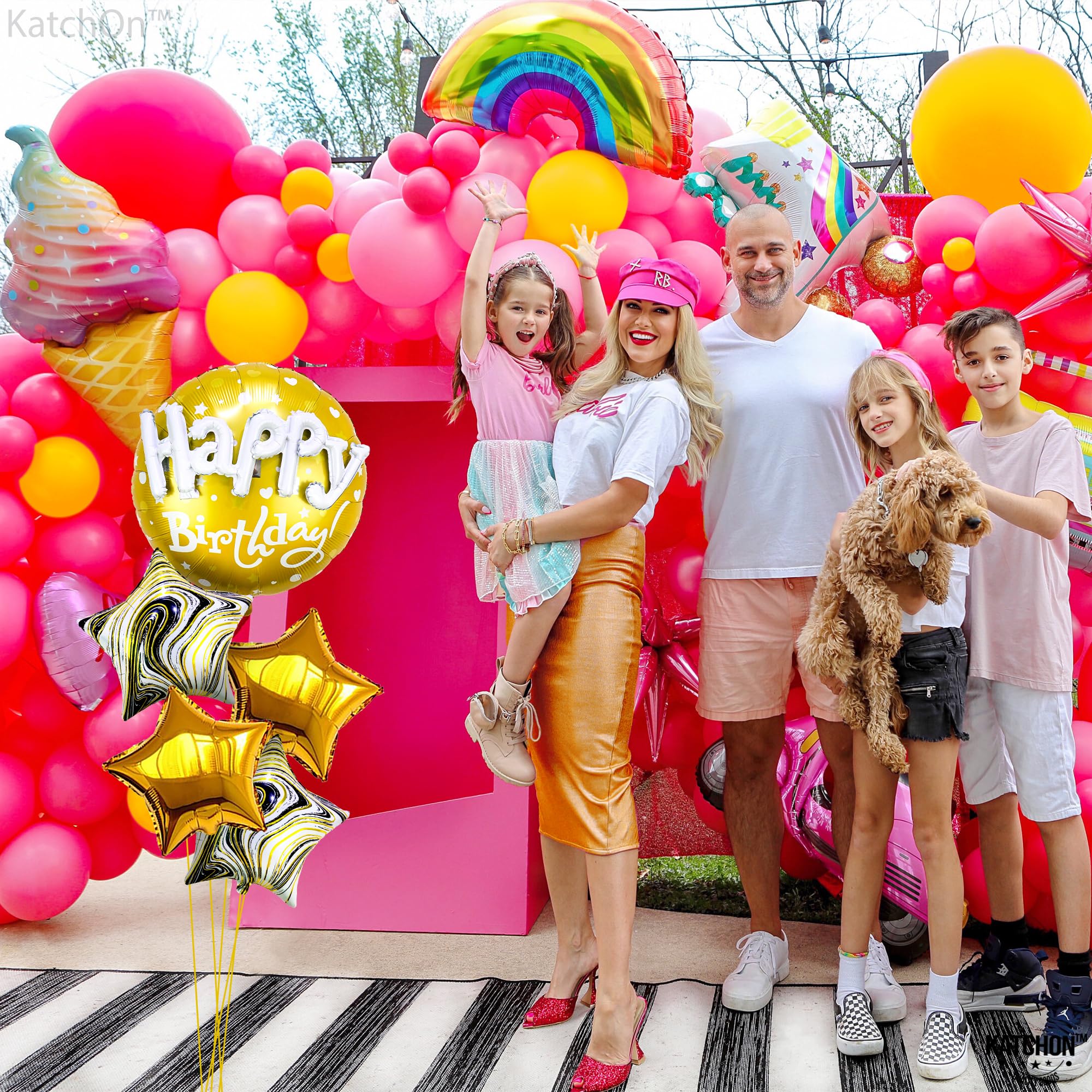 Welcome, your guest to your enchanted effect party set up using these 360 degree happy birthday mylar balloon bundle gold.