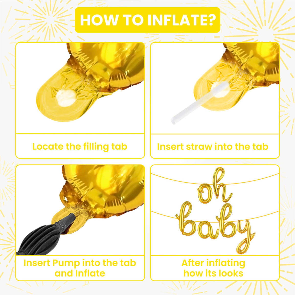 - Script Gold Oh Baby Balloon letters - 16 Inch - Gold Ribbon and 1 Straw to inflate