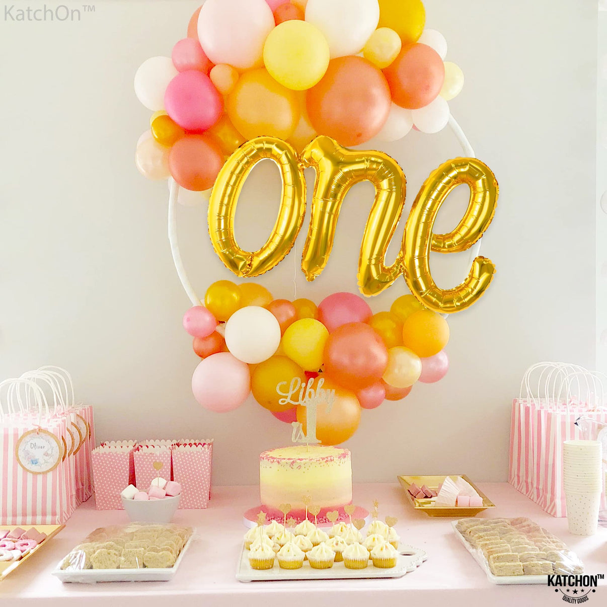 -One ballon gold, one balloons gold, one balloon garland