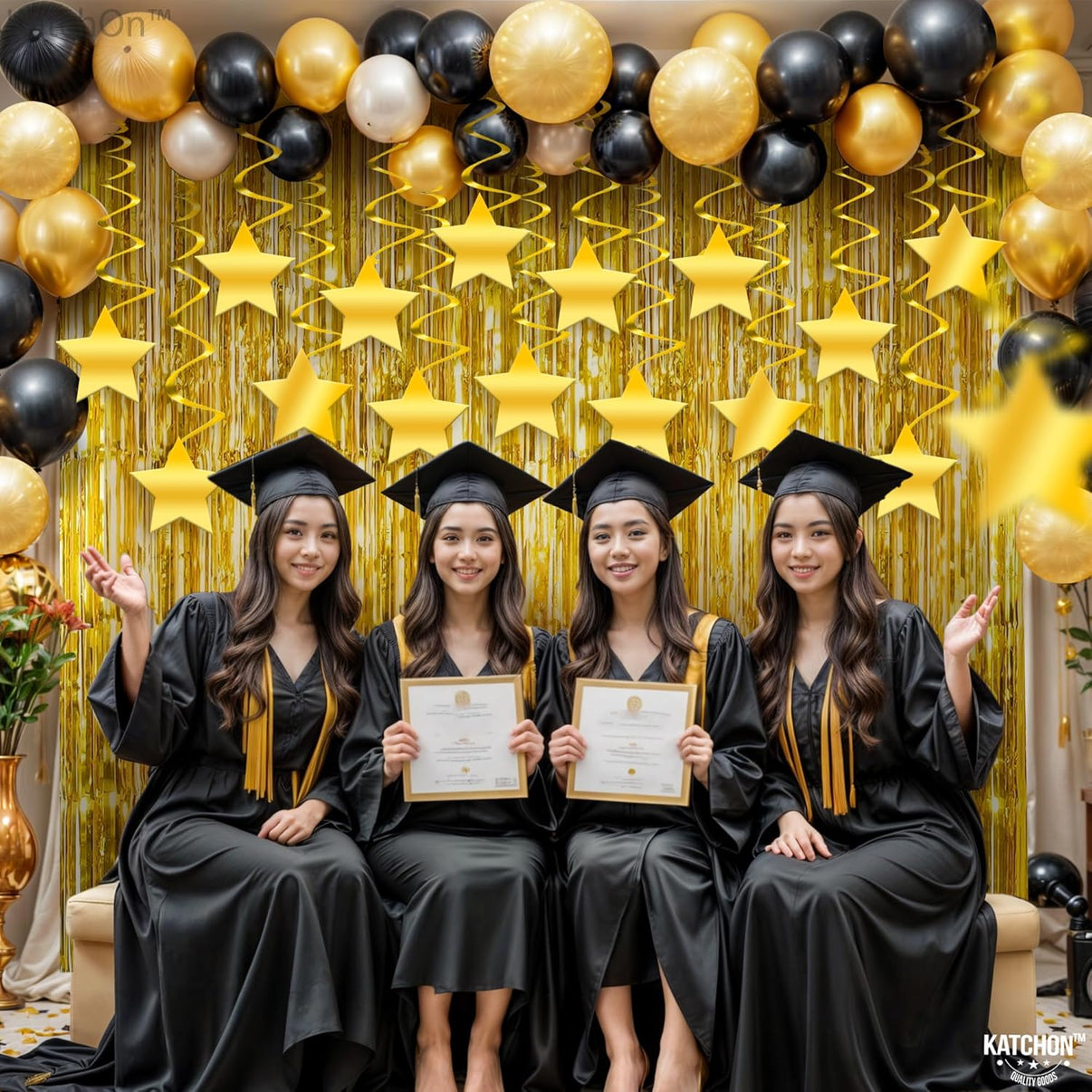 under the stars party decorations are perfect for gatherings, especially as hollywood theme party decorations. What you will get: 1. Gold Foil Star Cut Out ñ Pack of 15 | 3.7 Inch 2. Hanging Gold stars Foil Swirl ñ Pack of 15 Hanging dangling stars and Hanging Swirl Decorations on the party venue ceilings, can be attached to leave a starry puffy gold backdrop. Suggested Uses: Gender Reveal Decorations Black and Gold movie party decorations shining stars classroom decorations Twinkle twinkle little star baby shower Decorations party decorations, Awards ceremony decorations Gold Star decorations for party Hanging decorations for classroom Movie star party decorations, movie theme party decorations Gold star party decorations, graduation decorations 2025 Disco themed Birthday party decor/70s theme party decorations Oscars Themed Award ceremony decoration Golden birthday boy, Masquerade Prom, star ceiling decorations Hollywood classroom decorations, bachelorette party or bridal shower party Galaxy/ Solar system themed decor. Astronaut theme decorations with star themed party decorations Oscar themed party, star hanging decorations Star theme party decorations with gold Hanging stars decorations Graduation decorations class of 2025, hollywood decorations Movie night party decorations, star birthday decorations, movie theater decor Movie themed party decorations, go for gold party decorations Award ceremony decorations, olympic themed party decorations Shiny gold star hanging swirls, space theme classroom decor Hollywood theme party decorations, Hollywood party decorations 2025 graduation decorations, Gold graduation 2025 decorations, 2025 graduation party decorations, 2025 graduation backdrop Golden birthday decorations for movie theatre party decorations Go for the Gold decorations, Golden hangings for party Talent show decorations, oscar party decorations, hanging swirls party decorations Graduation hanging decorations Retirement decorations Make stylish black and gold themed party perfectly with Hanging gold Swirl Decorations Kit Gold stars decorations party, hanging star decorations Moon and stars party decorations Ideal hang from the ceiling star decor, gold fan decorations, all star party decorations and many more party ocassions