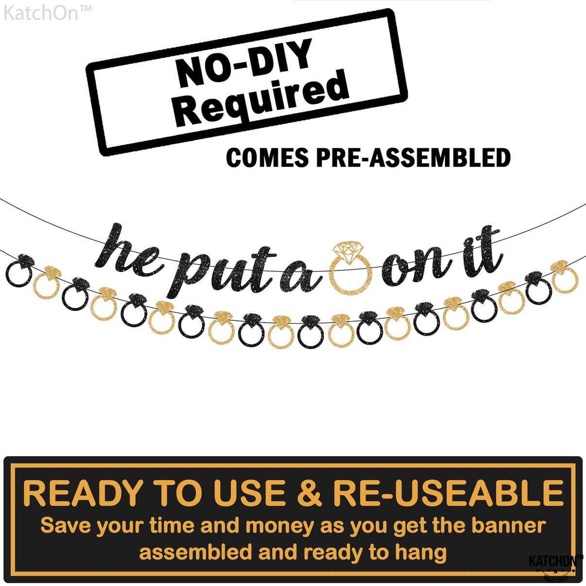 1.)Black and Gold He Put A Ring On It Banner: Glitter, 10 Feet, No DIY