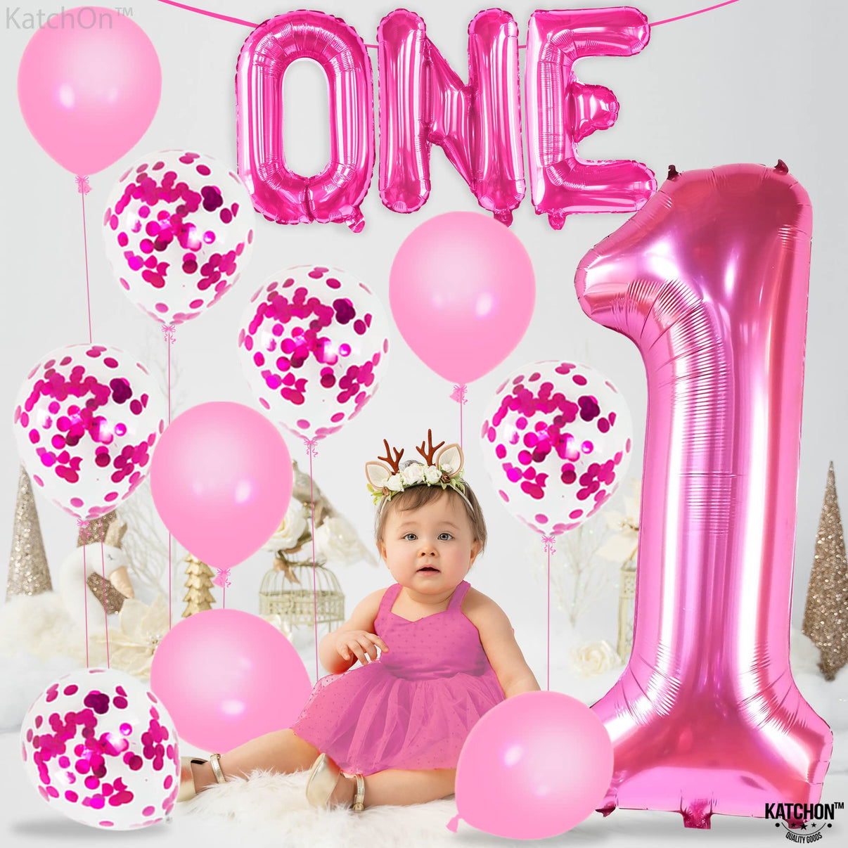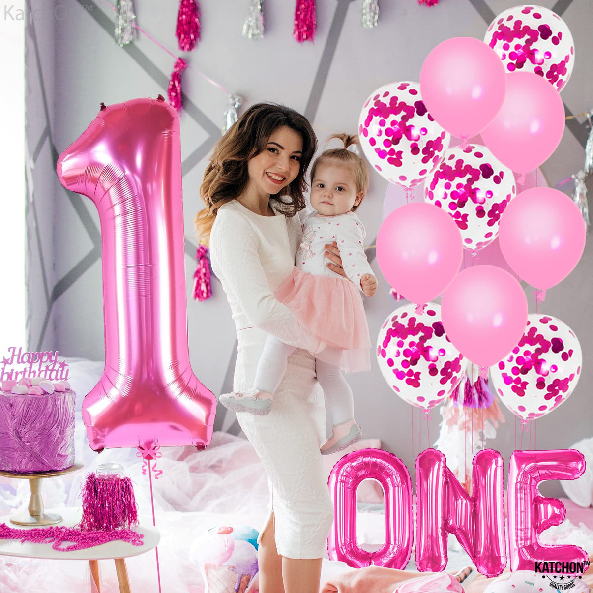KatchOn, Hot Pink 1 Balloons for 1st Birthday - 40 Inch, Pack of 12 | Pink 1 Number Balloon, Pink First Birthday Decorations for Girl | Pink Party Decorations