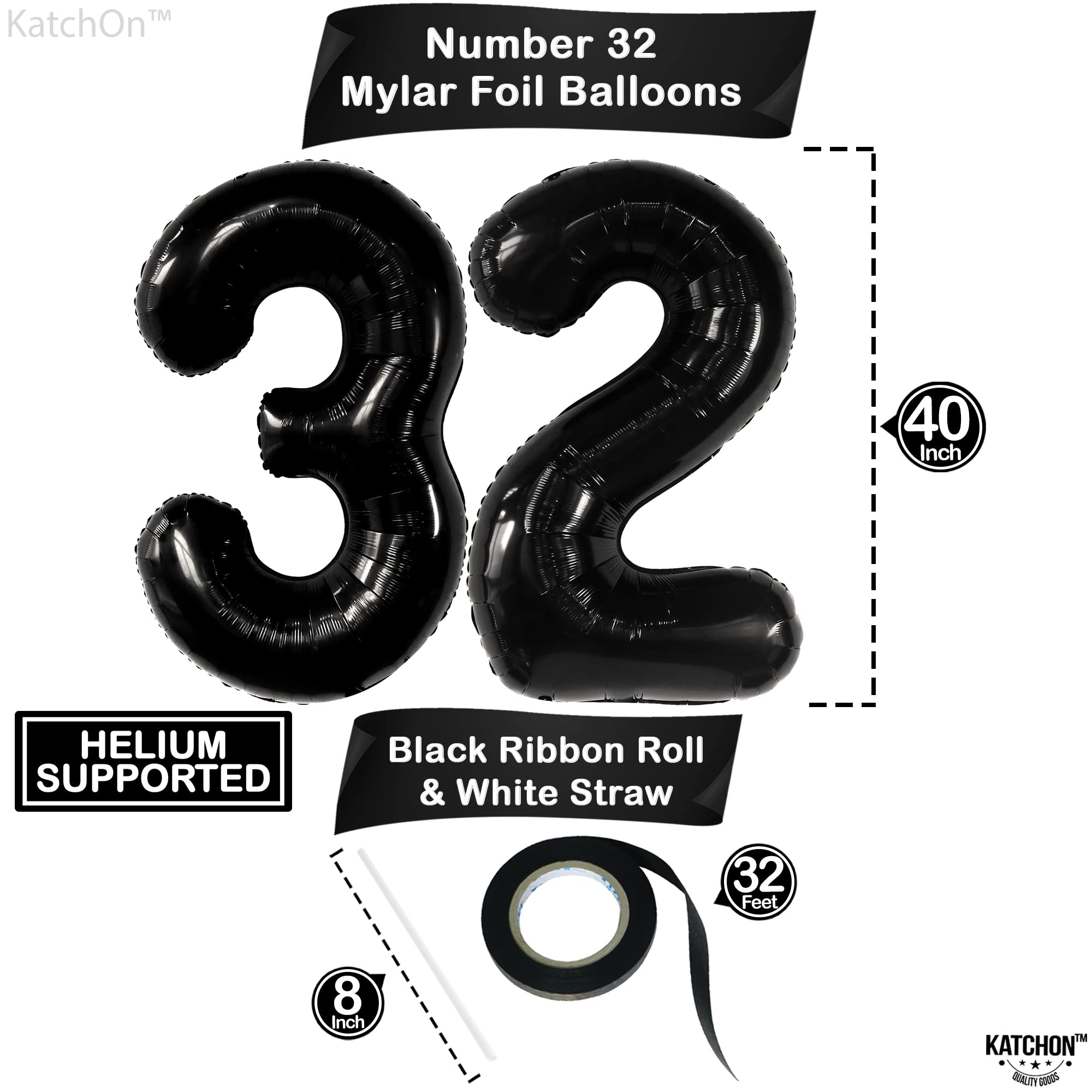 KatchOn, Huge Black 32 Balloon Numbers - 40 Inch | Foil Number Balloon For 32nd Birthday Party Decorations | 32 Balloon For Anniversary Decorations | Black Party Decoration