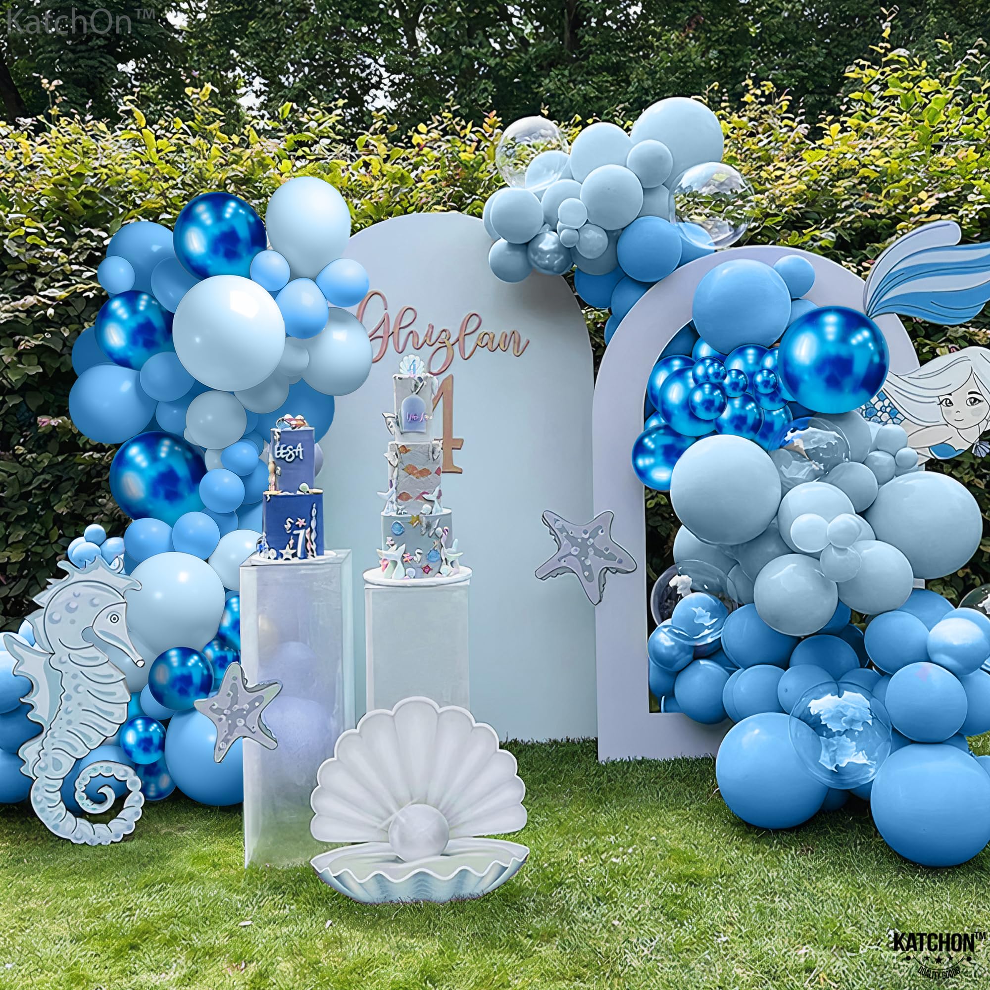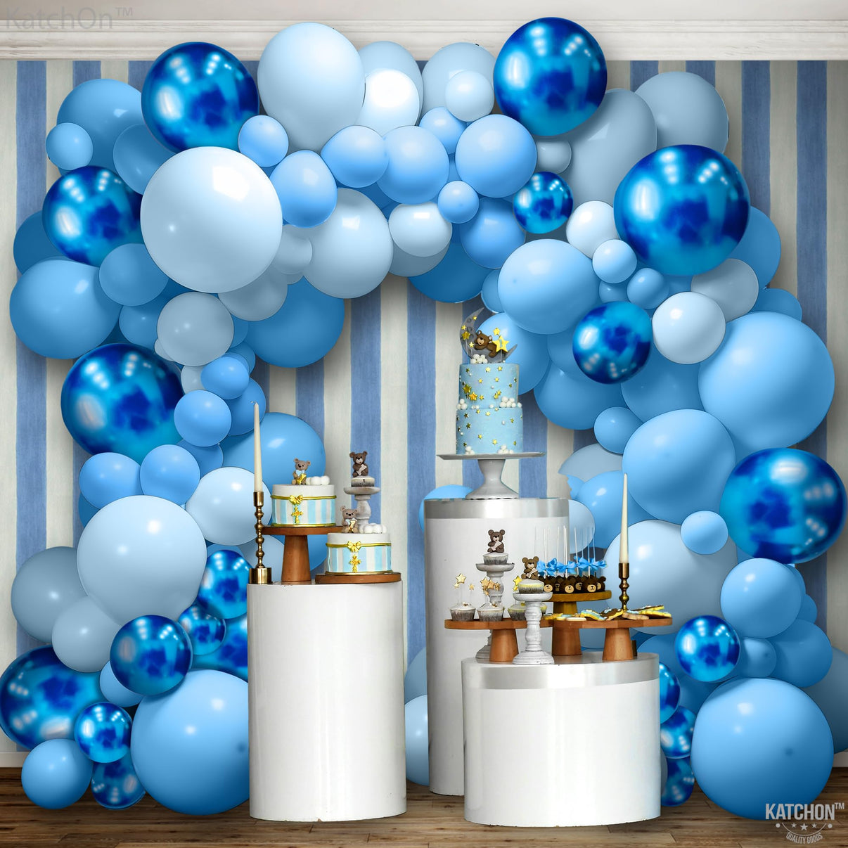 KatchOn, Huge Blue Balloon Arch Kit - Pack of 180, Different Sizes 18, 10, 5 Inches | Pastel Blue and Metallic Blue Latex Balloons for Light Blue Birthday Decorations | Ocean Themed Party Decorations