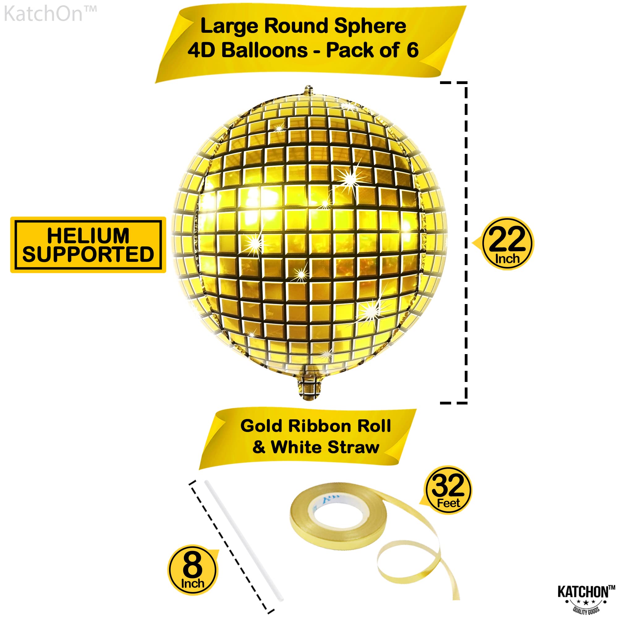 1. Gold Disco ball balloons-22 Inch each, Pack of 6, Helium Supported