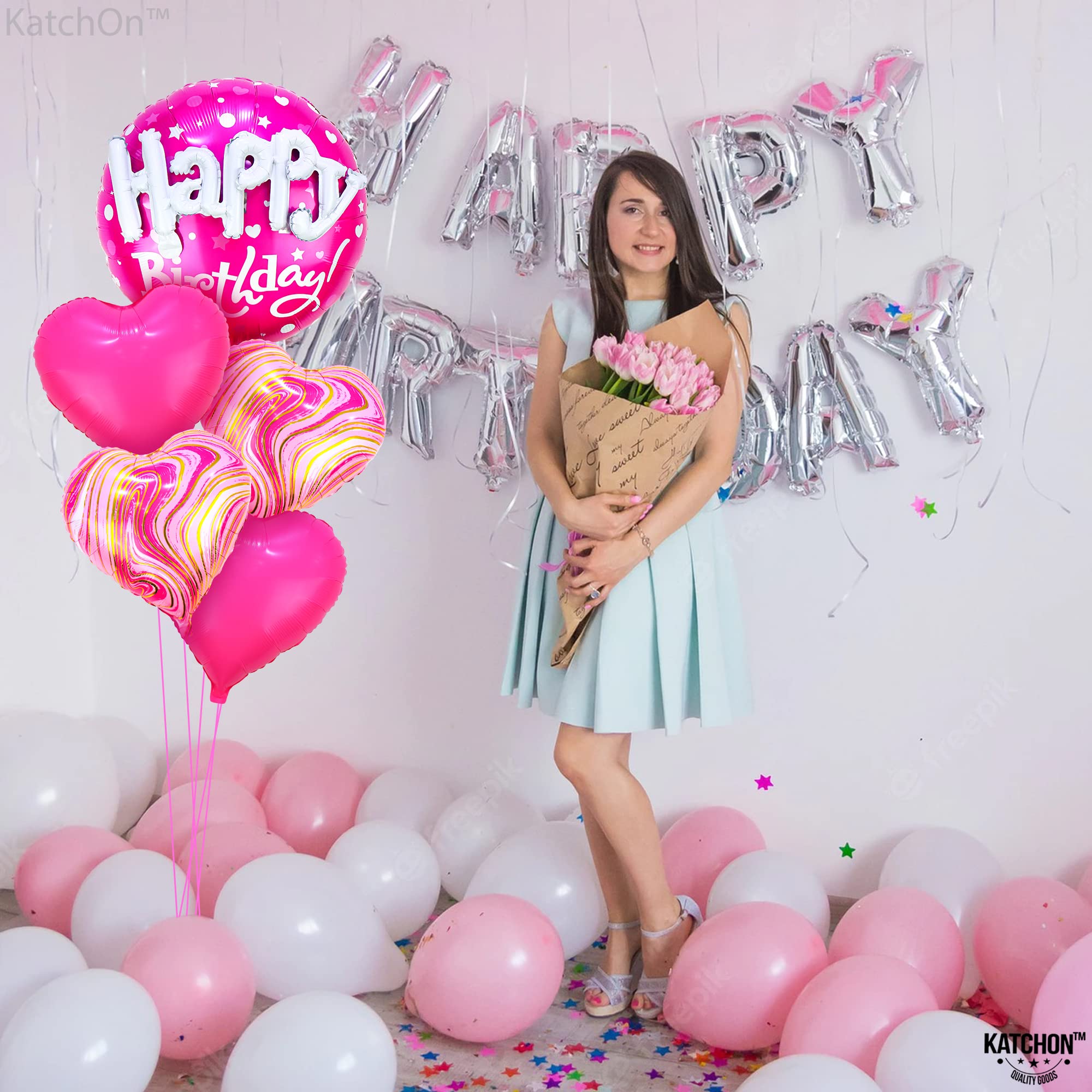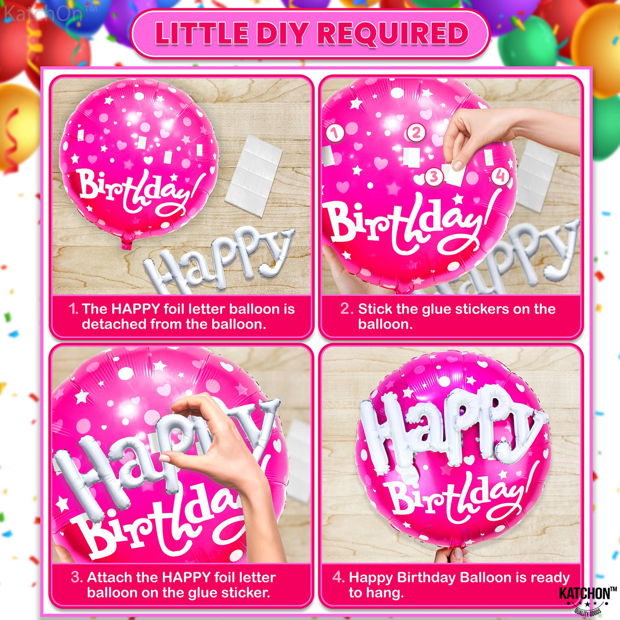 - Hot pink happy birthday balloon set makes your Hot pink happy birthday balloons party a talk of the town with happy birthday pink foil balloon bouquet for women
