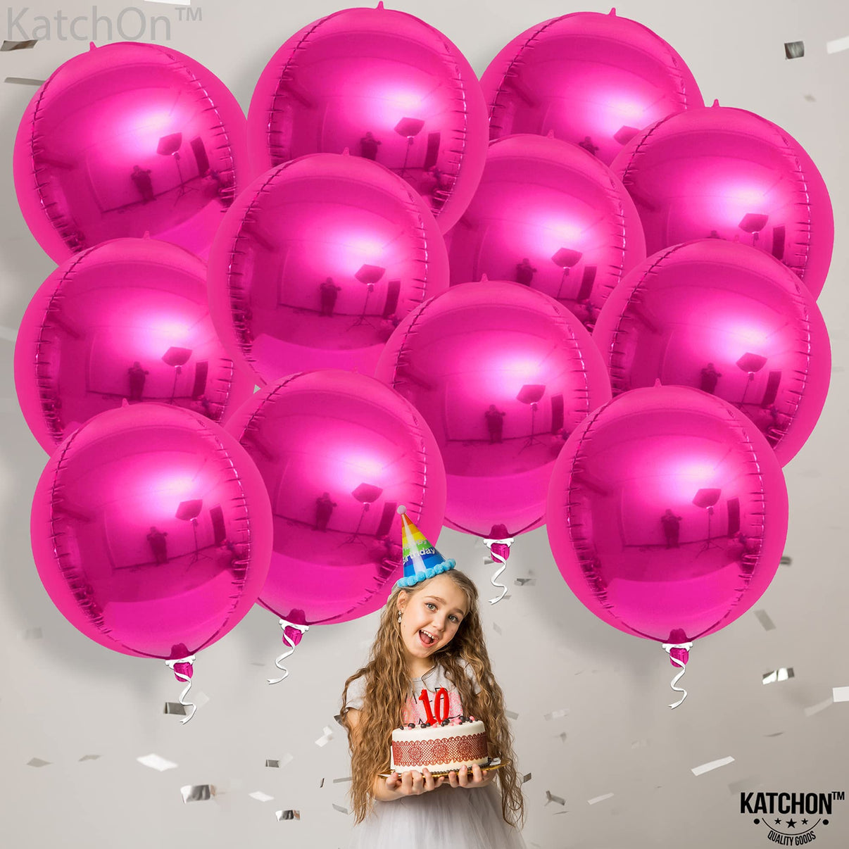 Inflate these super-sized 4D round pink ballons Pair these katchon big hot pink balloons with neon mylar balloons to create a hot effect in your party