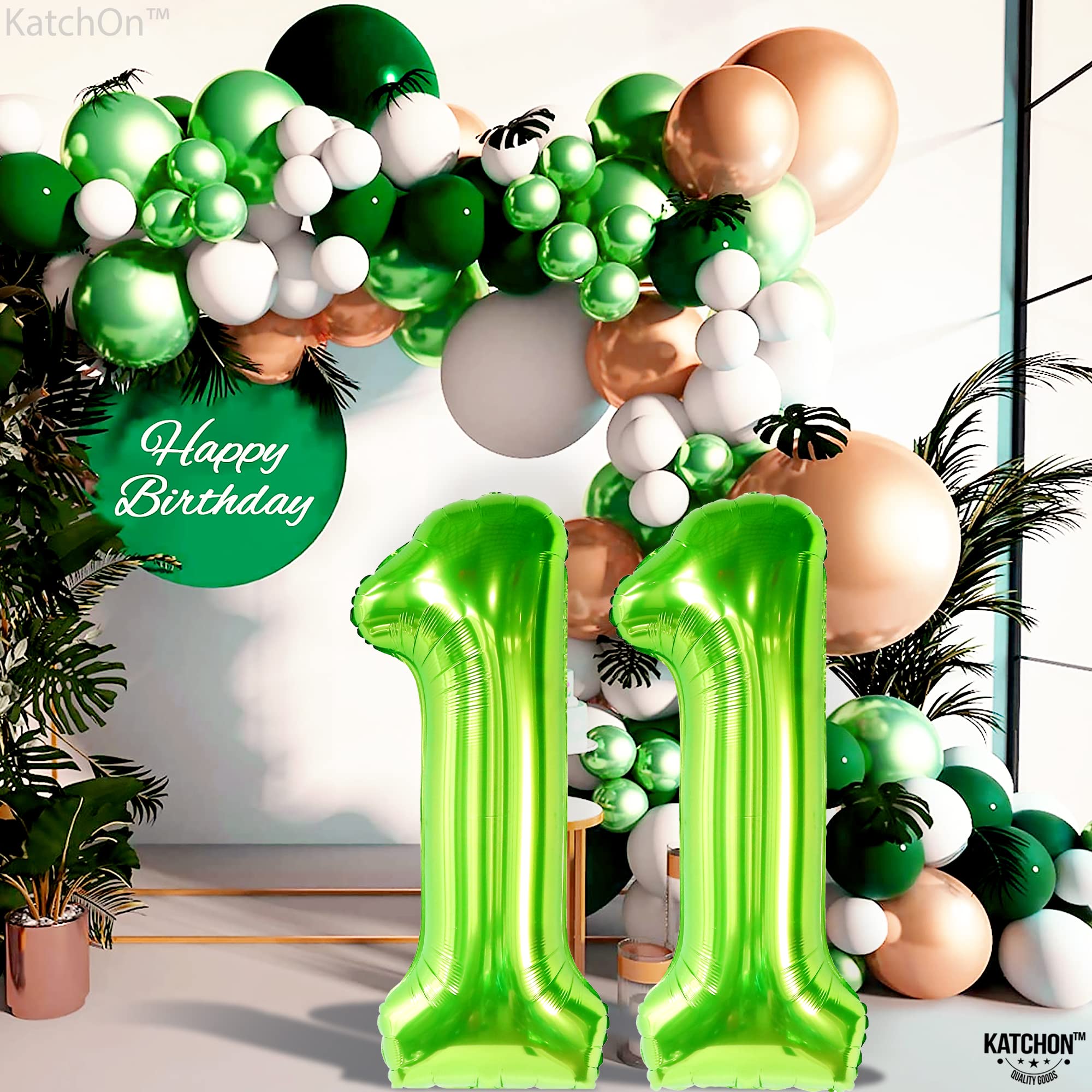 KatchOn, Light Green 11 Balloon Number - Huge, 40 Inch | Neon 11 Balloon, 11 Balloons Number Birthday | 11th Birthday Decorations For Boys Green | Lime Green Balloon 11, Neon 11th Birthday Decorations