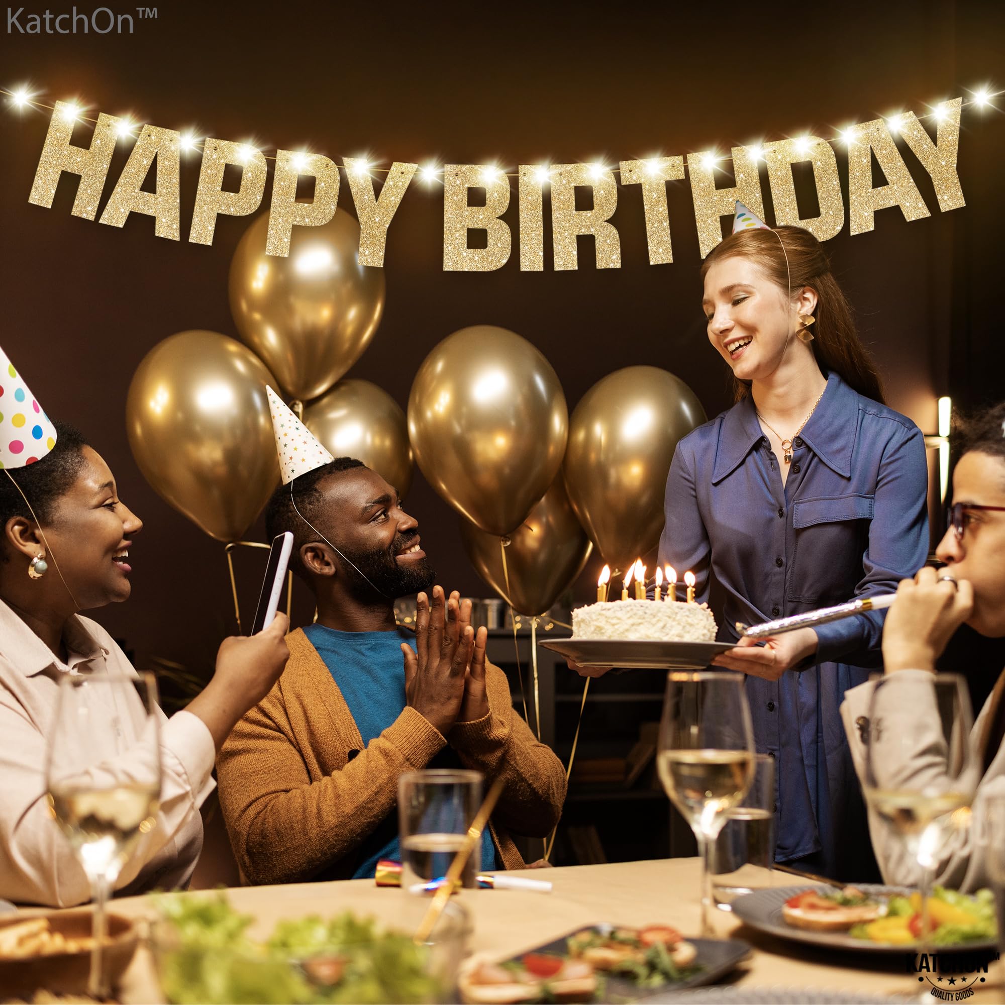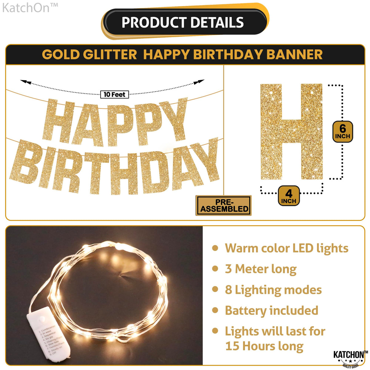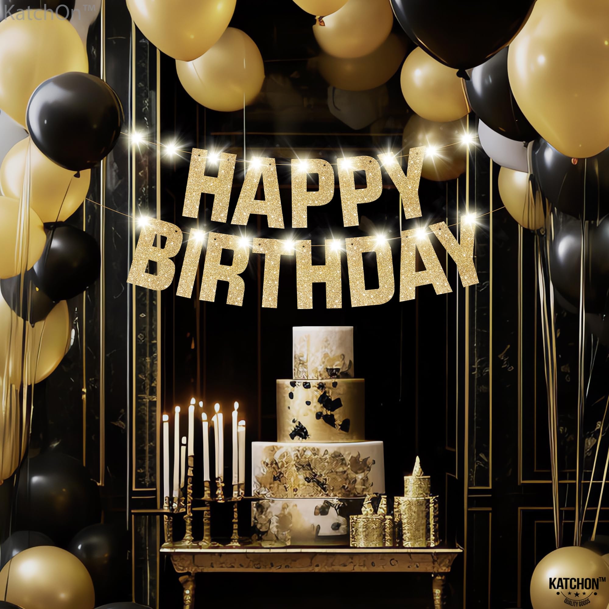 Gold happy birthday banner glitter for light up birthday decorations, letrero de happy birthday