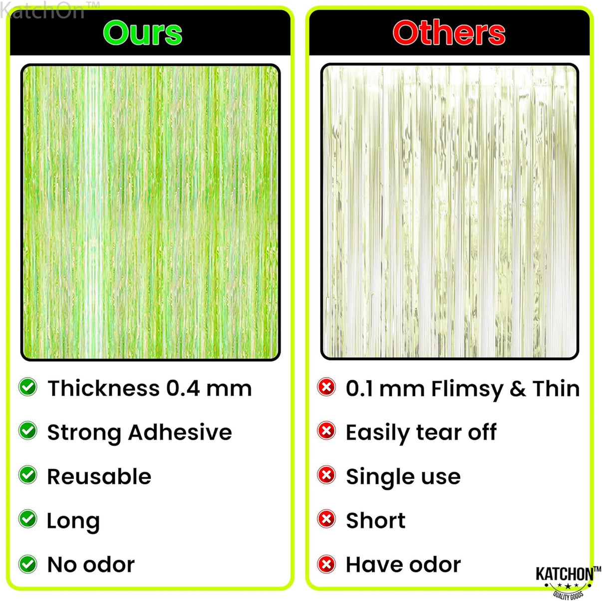 KatchOn, Neon Green Fringe Curtain | Lime Green Streamers for Margs and Matrimony Bachelorette Decorations | Green Tinsel Backdrop for Neon Party Decoration, Glow Party and Halloween Decorations