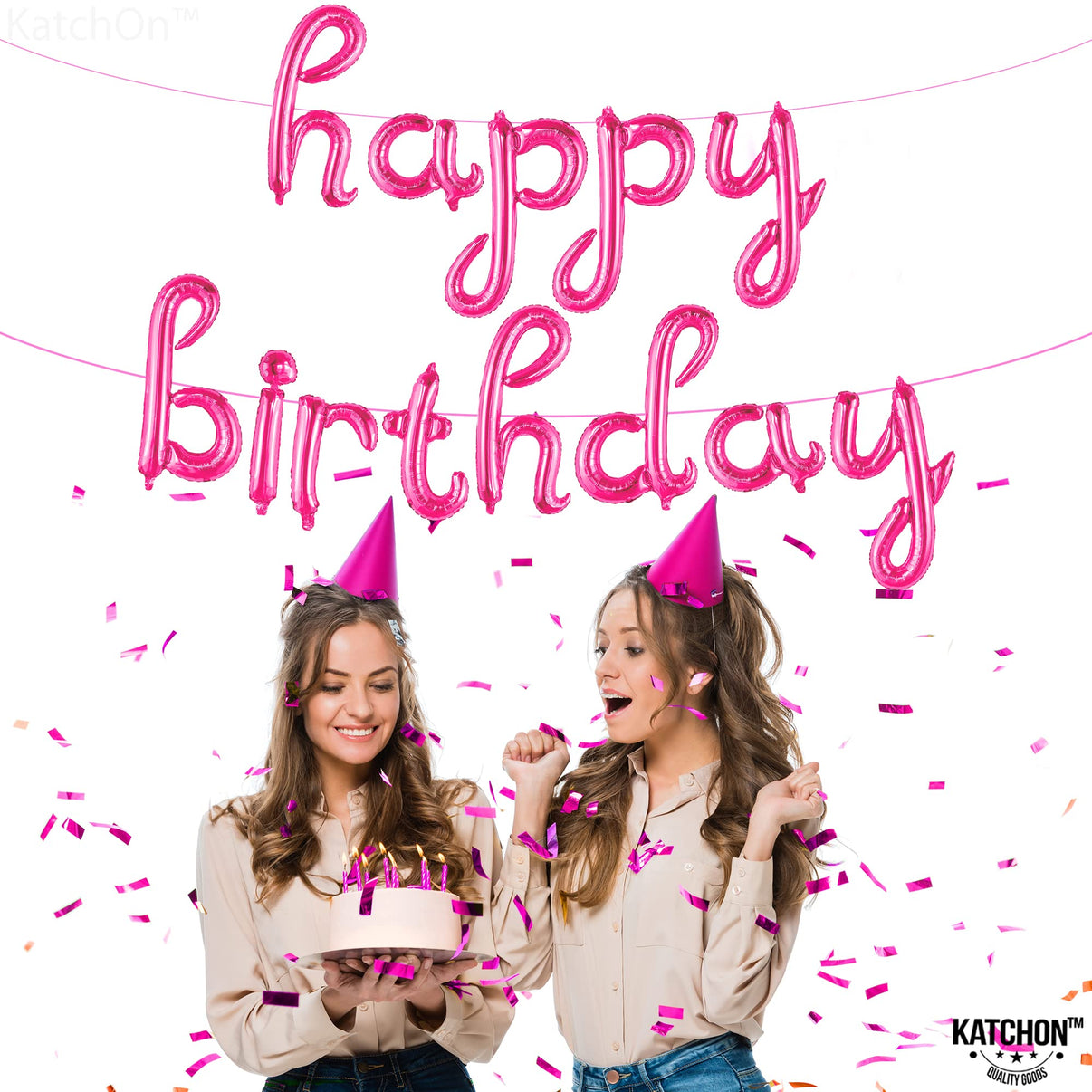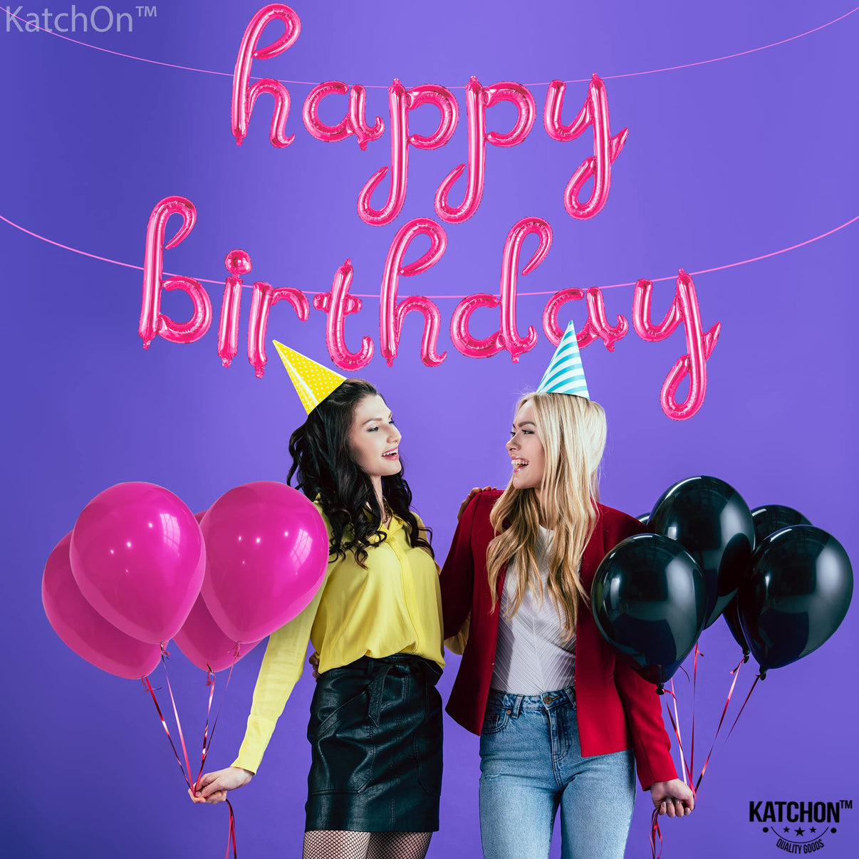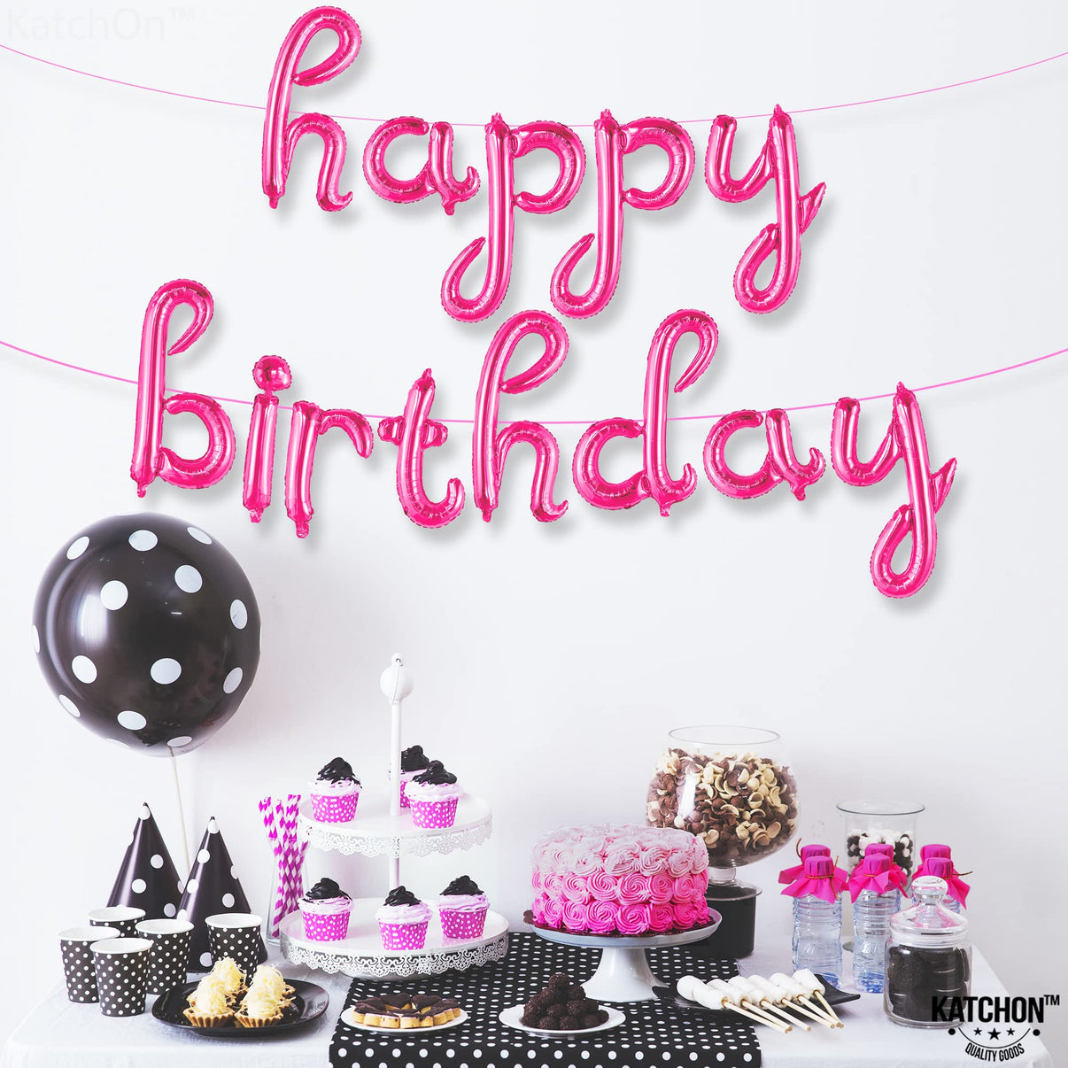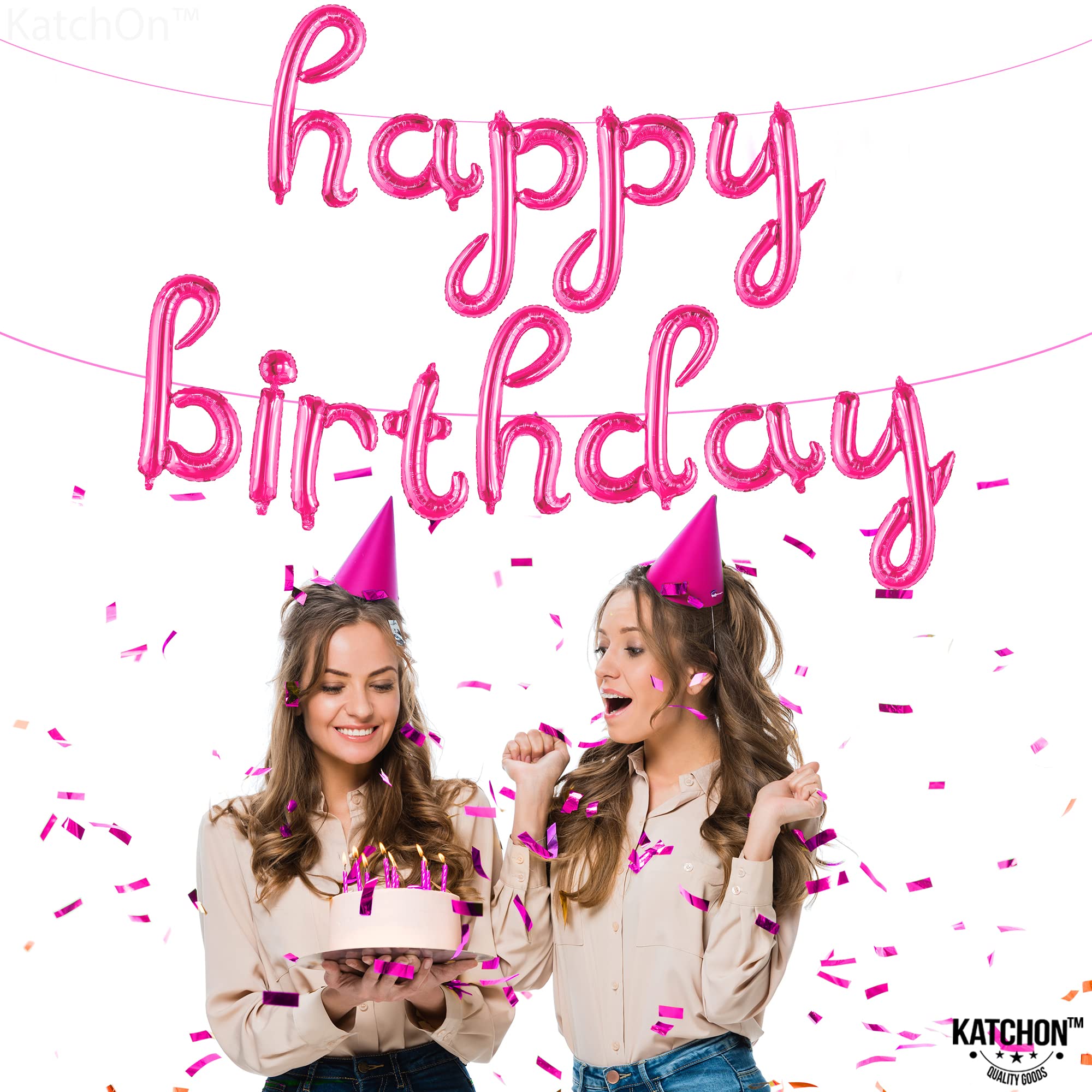Beautiful Happy Birthday Balloons for women plastic hot pink birthday decorations supplies kit. So, what are you waiting? Click now!! and make your party rock!