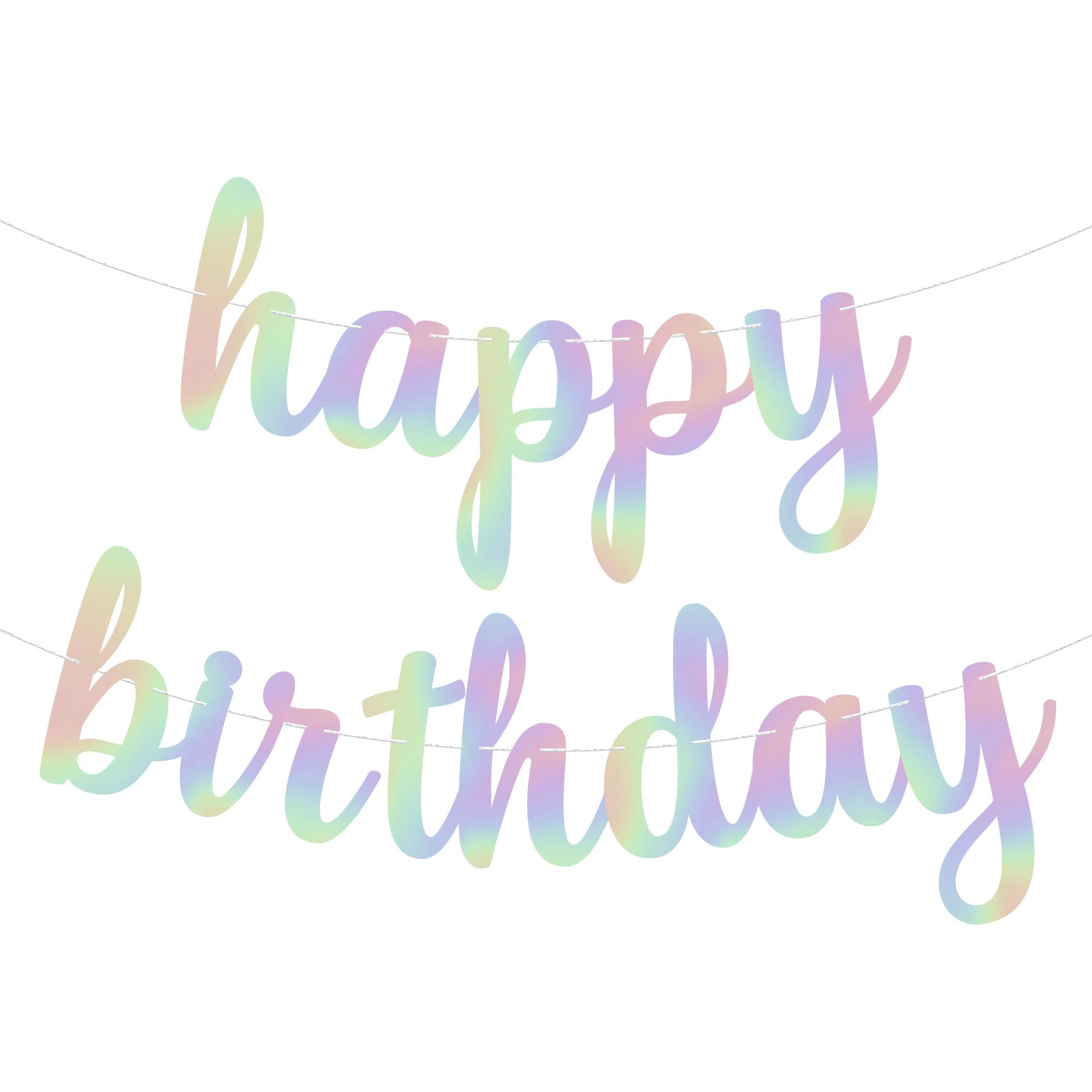 Material - Sturdy Cardstock Iridescent Cursive Happy Birthday Banner - 10 Feet, No DIY