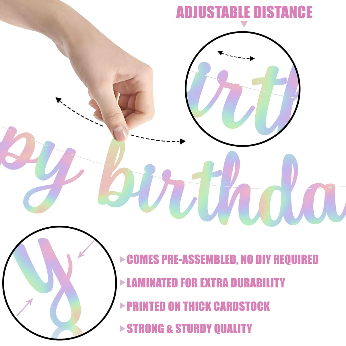 happy birthday banner for women iridescent birthday banner,happy birthday banner iridescent for any age group Rainbow unicorn birthday banner for aesthetic party decorations Rainbow birthday sign for Holographic party supplies, Sagittarius birthday decorations mermaid happy birthday sign, mermaid happy birthday banner for capricorn party decorations, aesthetic party decorations