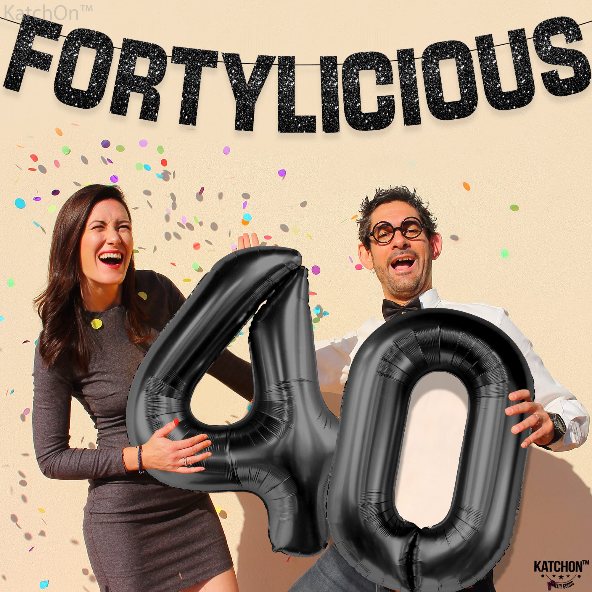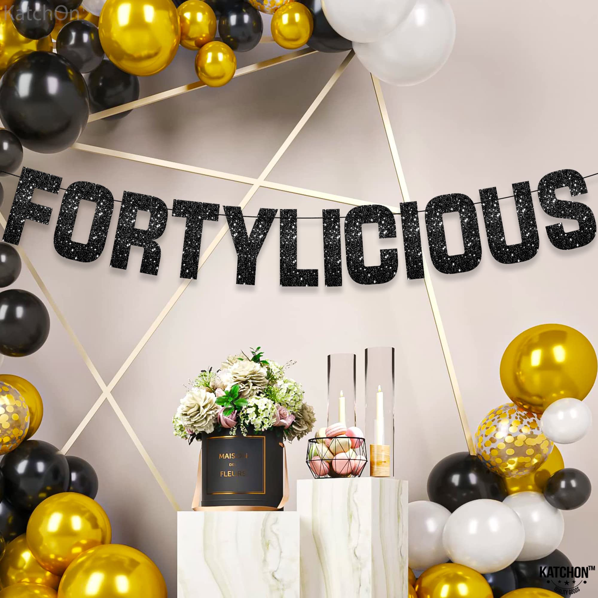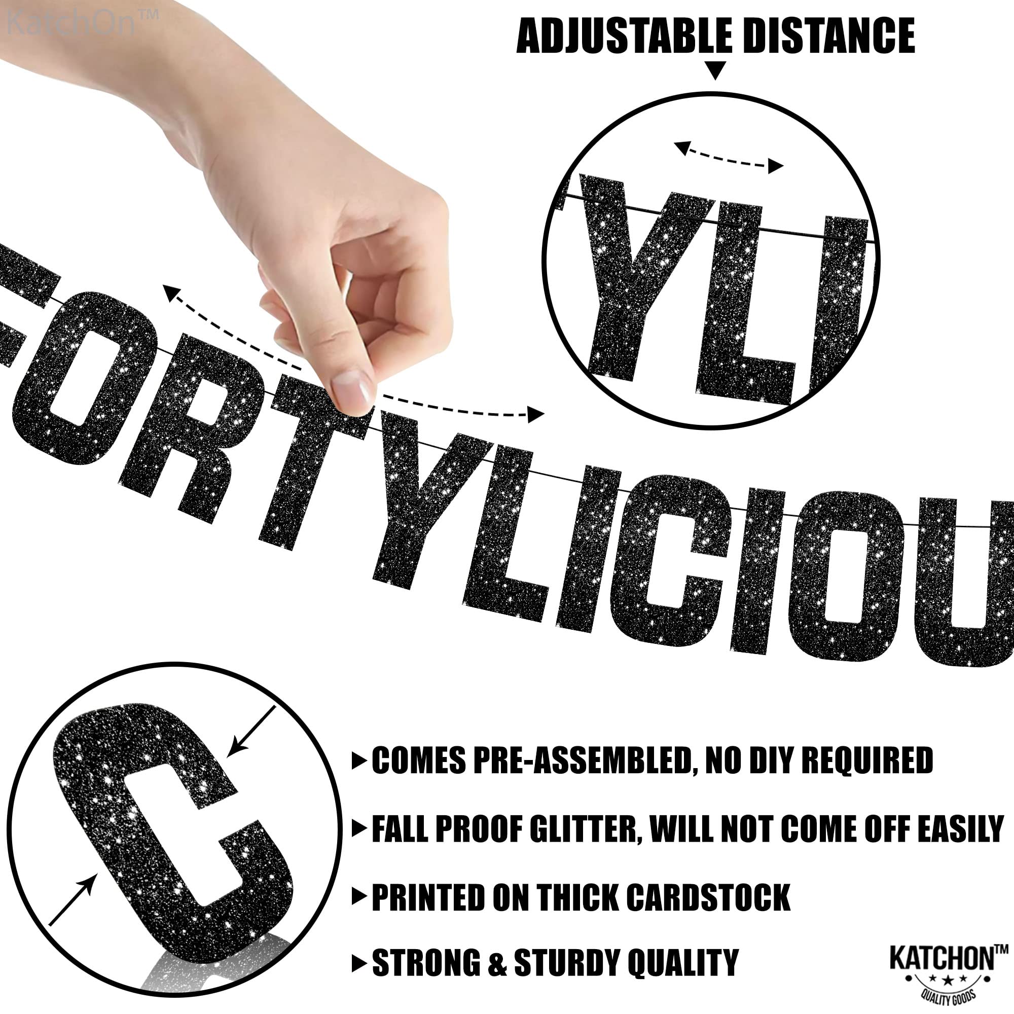 KatchOn, Prestrung, Glitter Black Fortylicious Banner - 10 Feet | Black Fortylicious Banner For Happy Birthday Decorations | 40th Birthday Decorations For Men