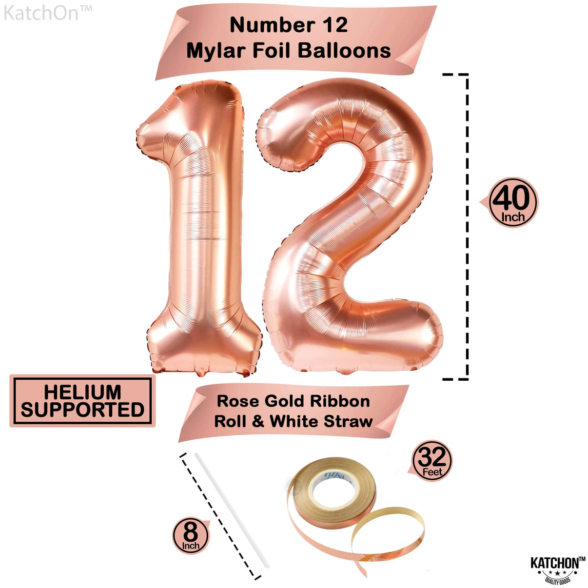 - Rose gold 12 balloons to Re-use several times, number 12 ballons for birthdays