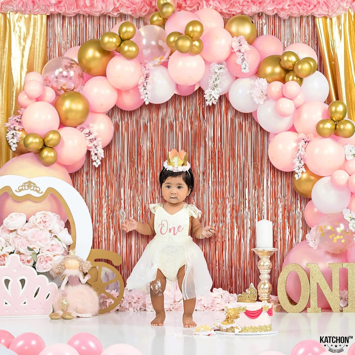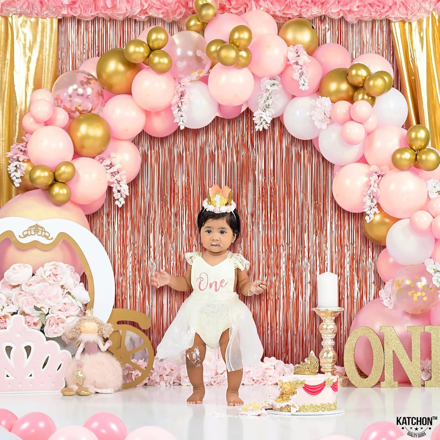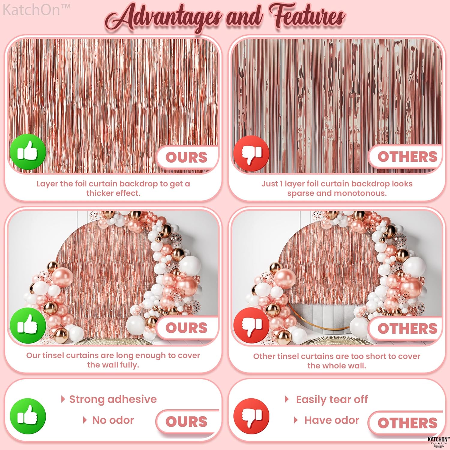 KatchOn, Rose Gold Foil Fringe Curtain, 8 Feet - Pack of 2