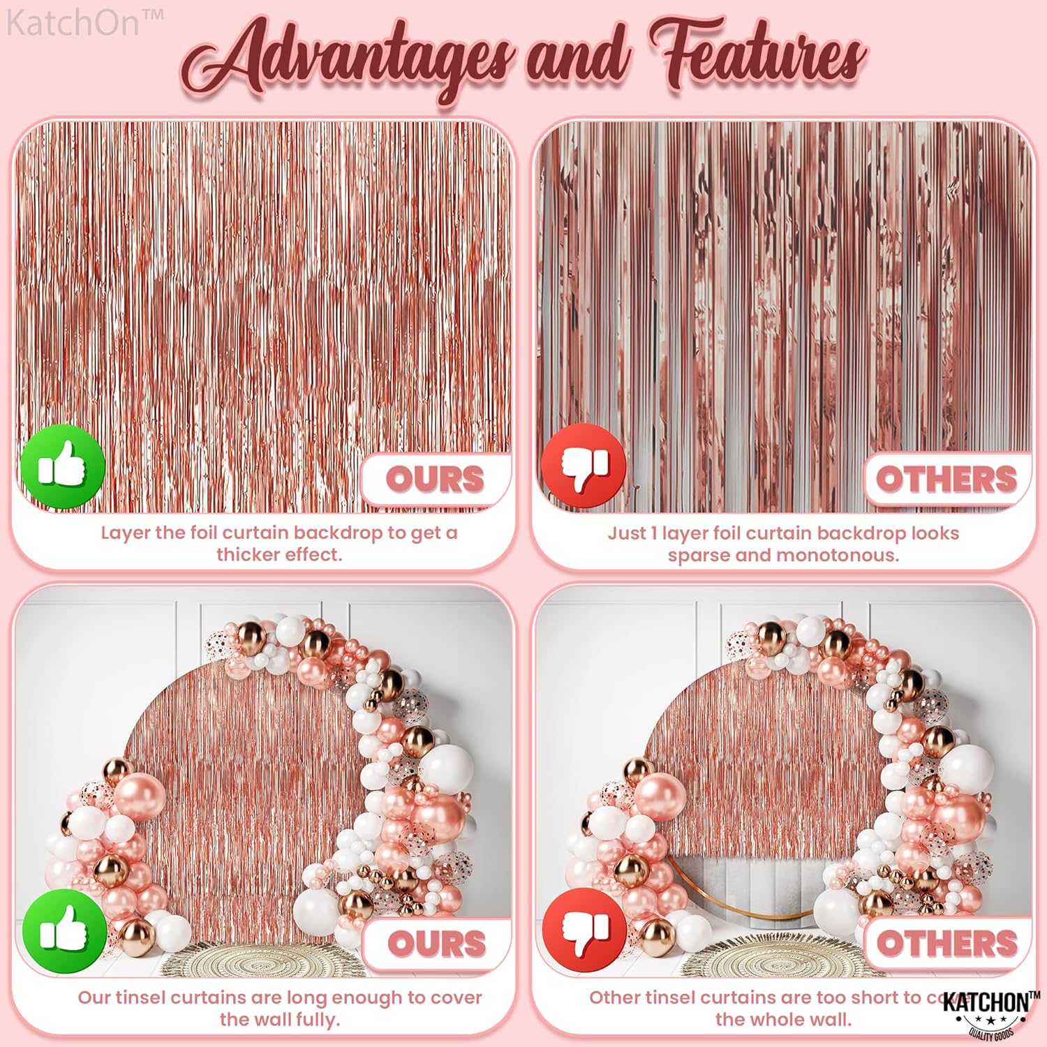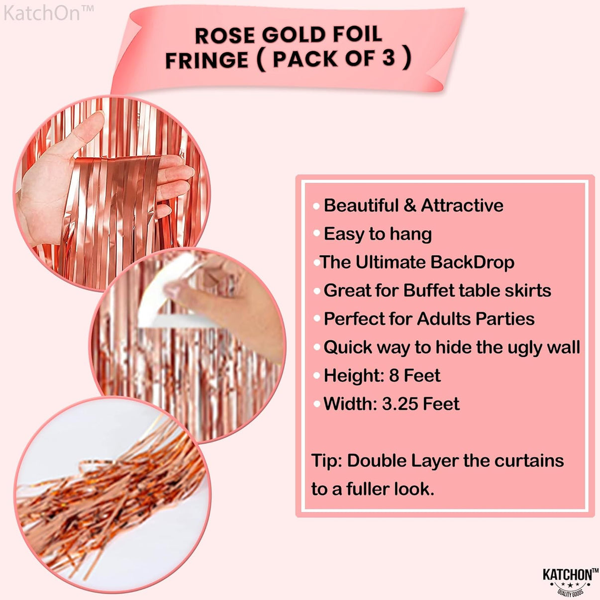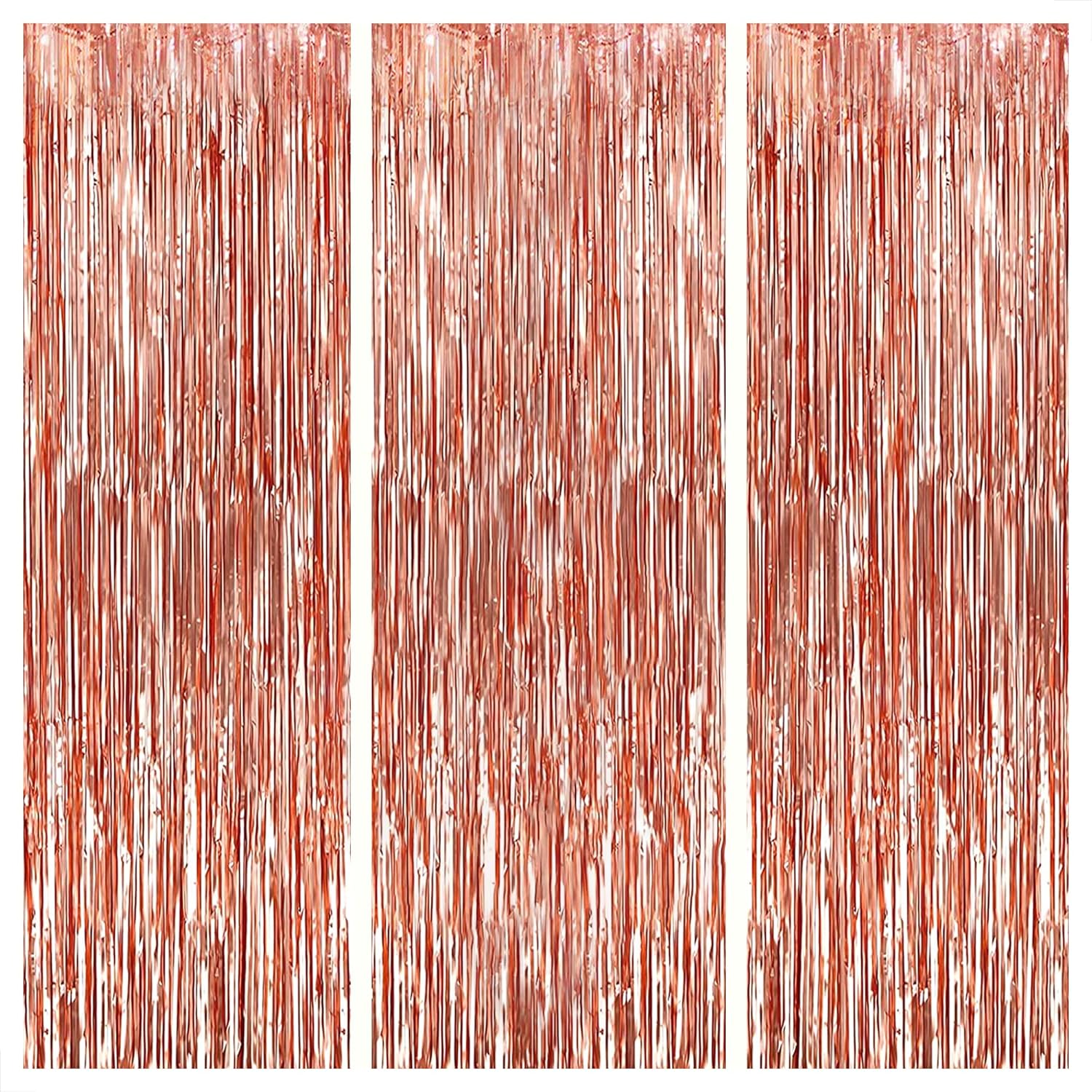 1) Real Rose Gold Foil Curtain - Pack of 3, 9.6x8 feet