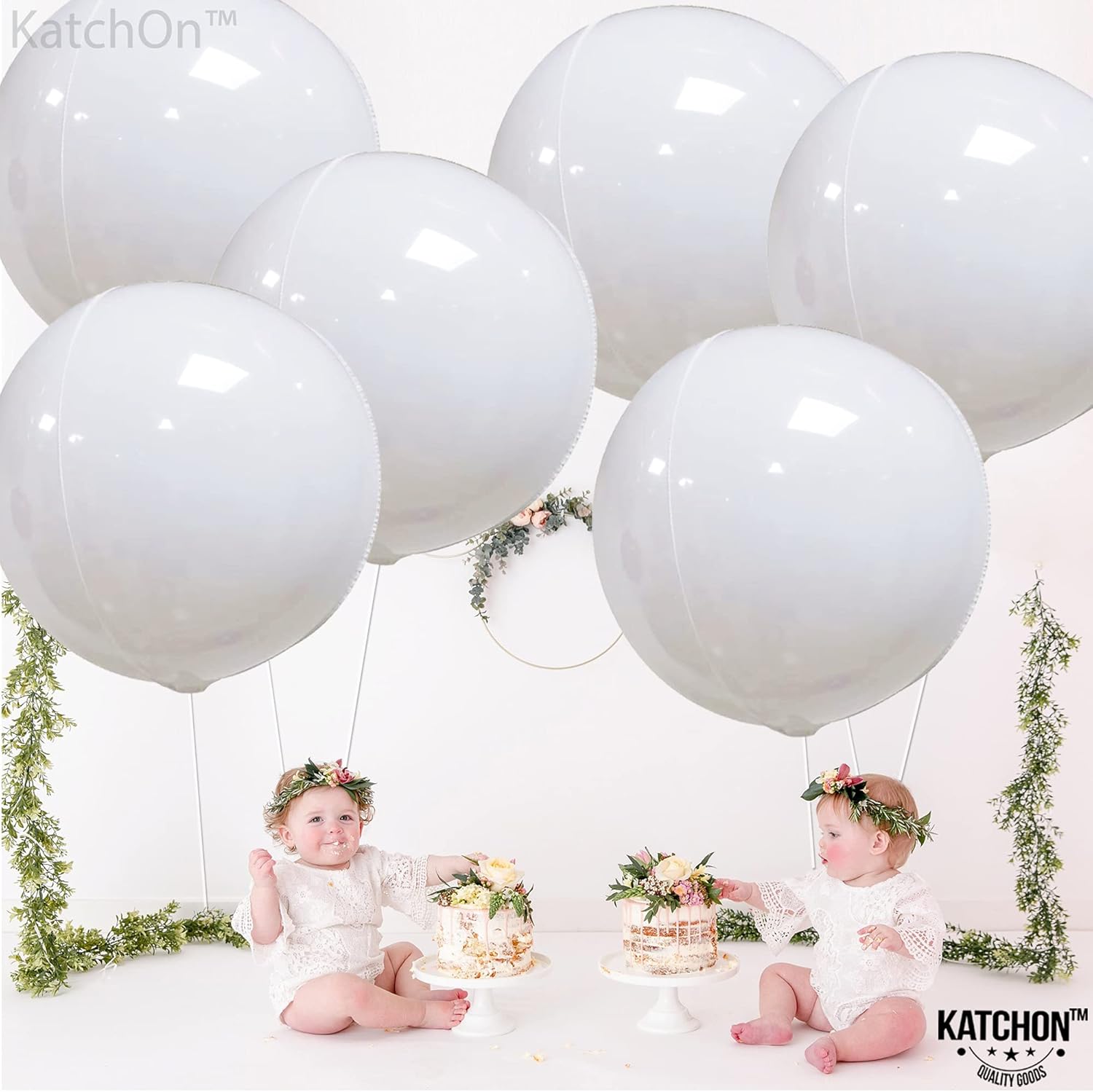 KatchOn, Round White Foil Balloons - 22 Inch, Pack of 6 | 4D Mylar White Balloons for Party Decorations | Metallic Balloon for Birthday, Anniversary, Bridal Shower, Baby Shower Decorations