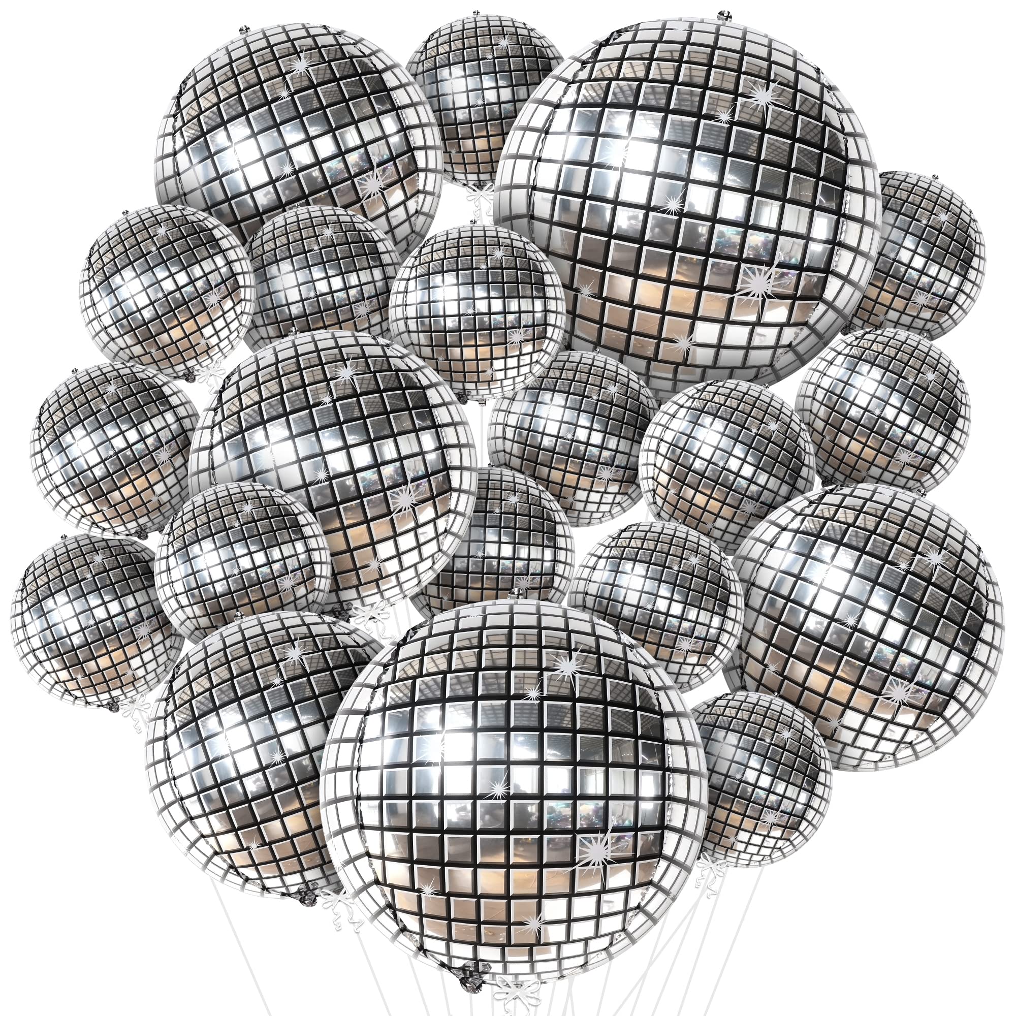 These 32 inch disco ball balloons or new years eve balloons are a fun and unique way to add some disco vibes to retro party decorations. Whether you're planning a disco ball decorations, christmas decorations, disco decorations