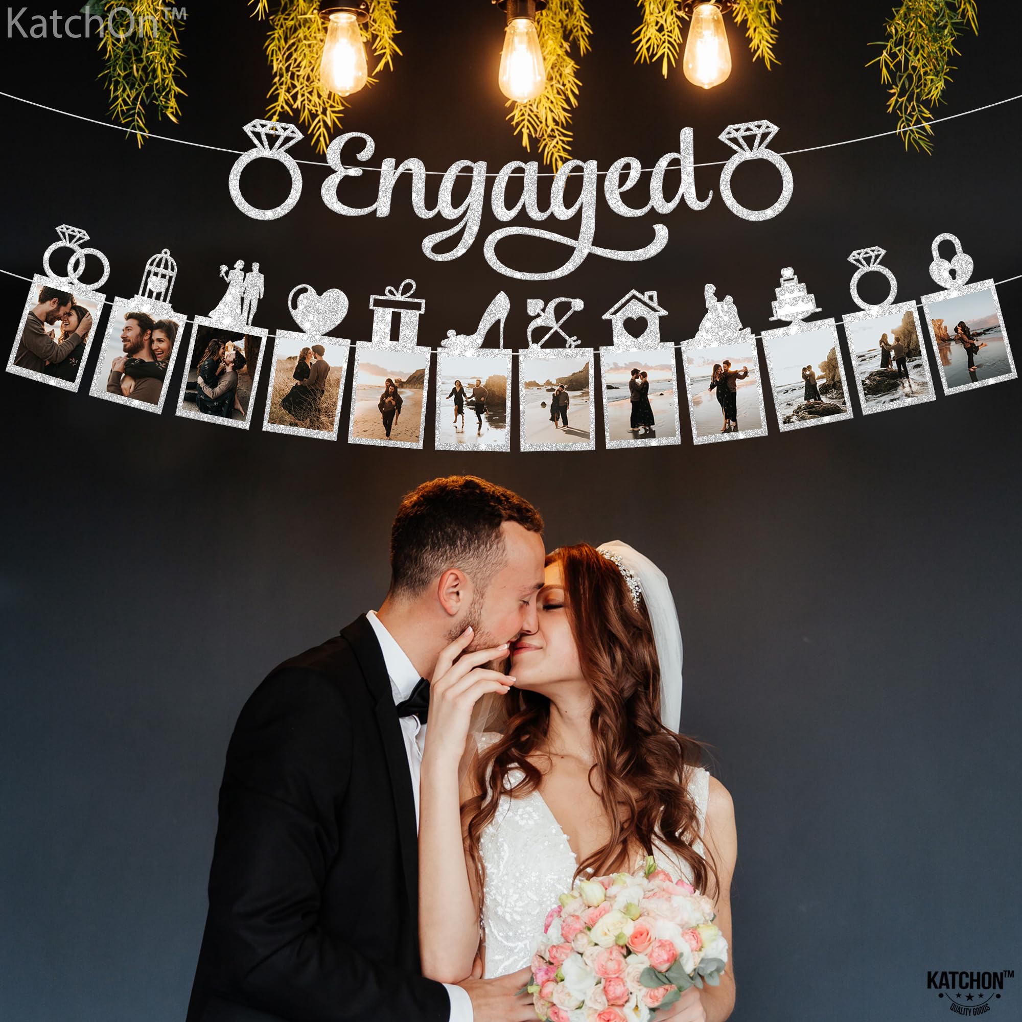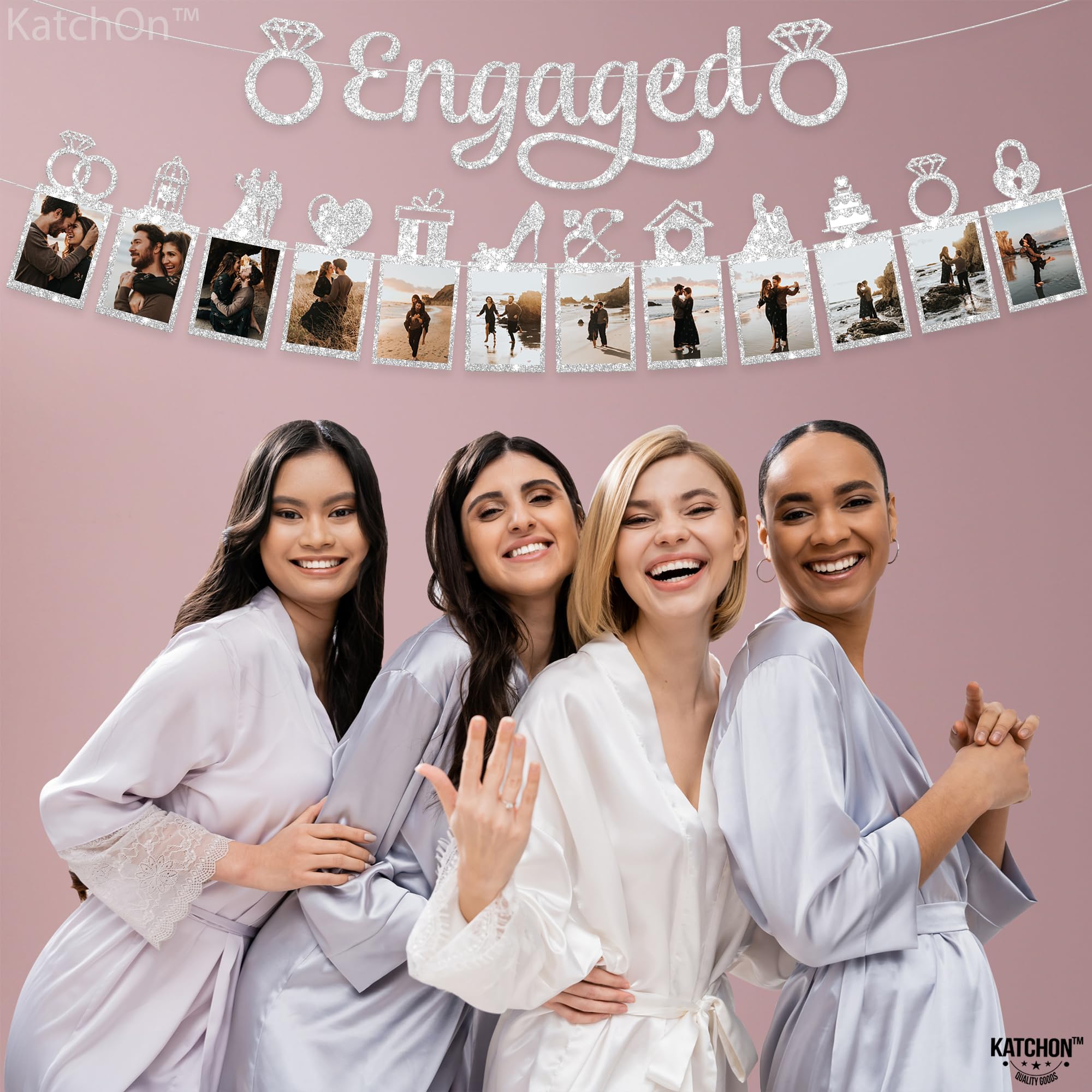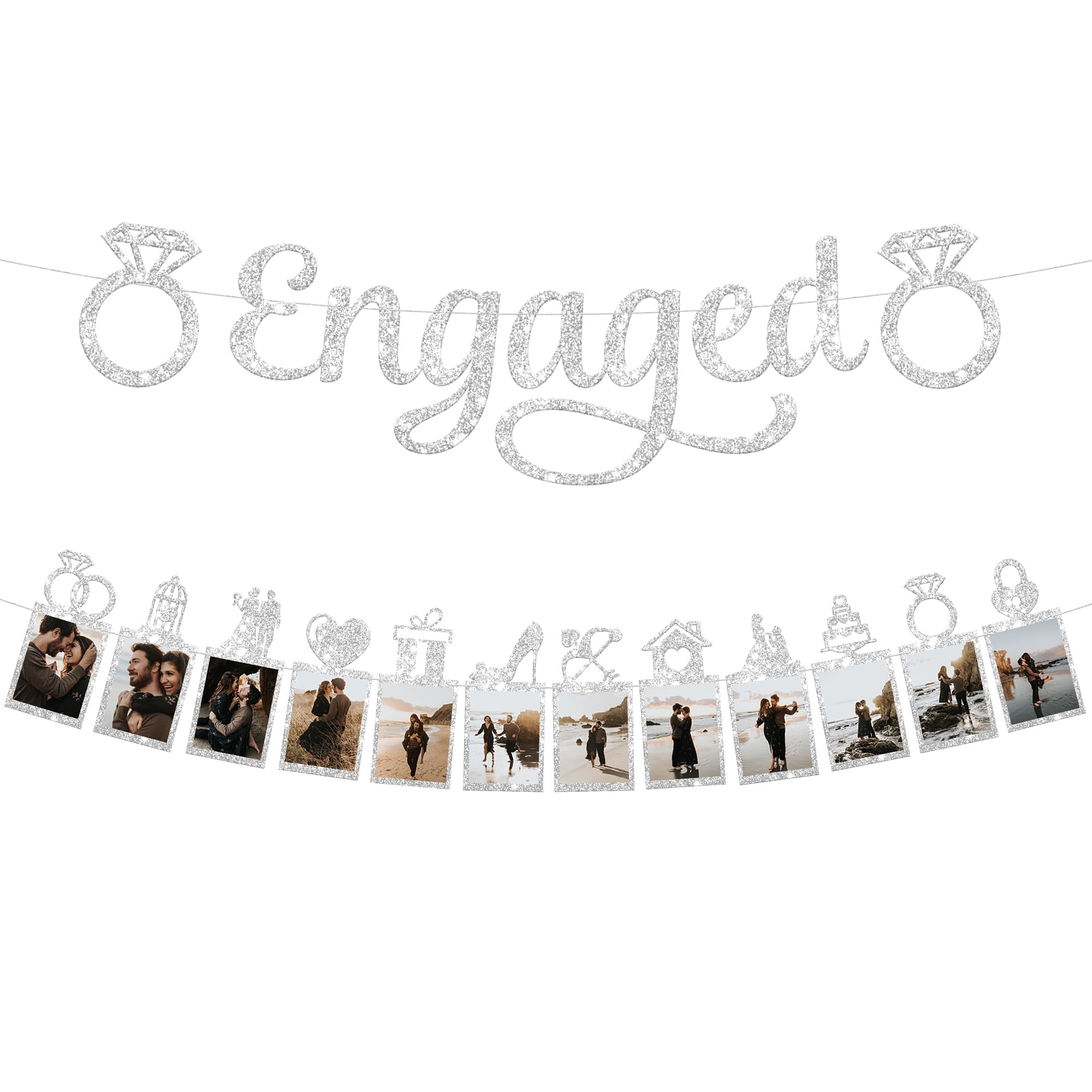 - Engaged photo banner, Bride Silver Bachelorette party decorations.