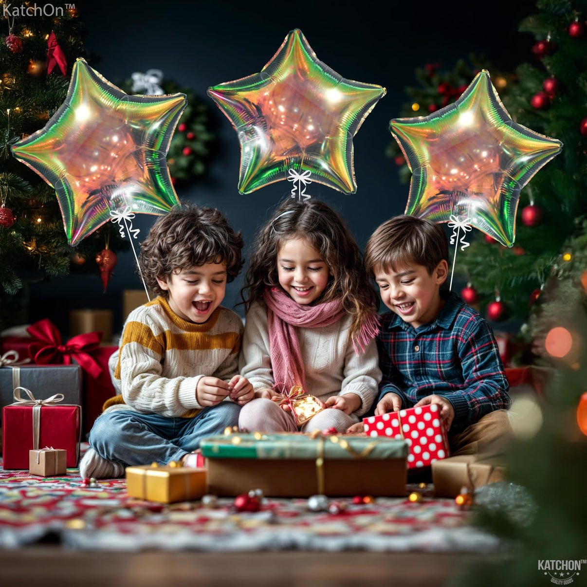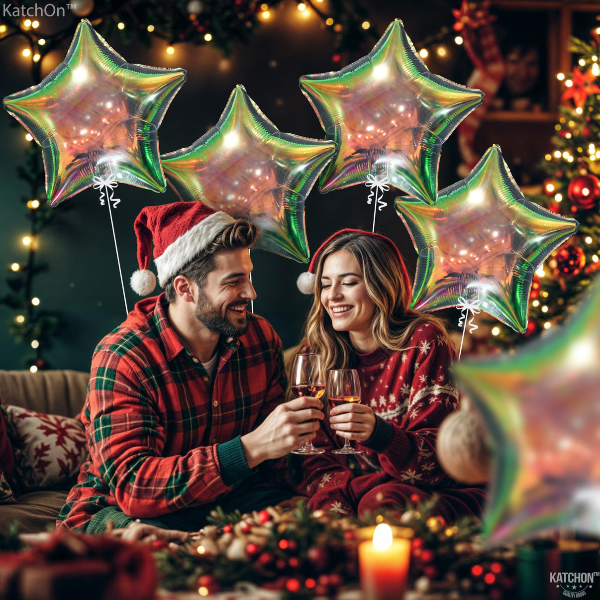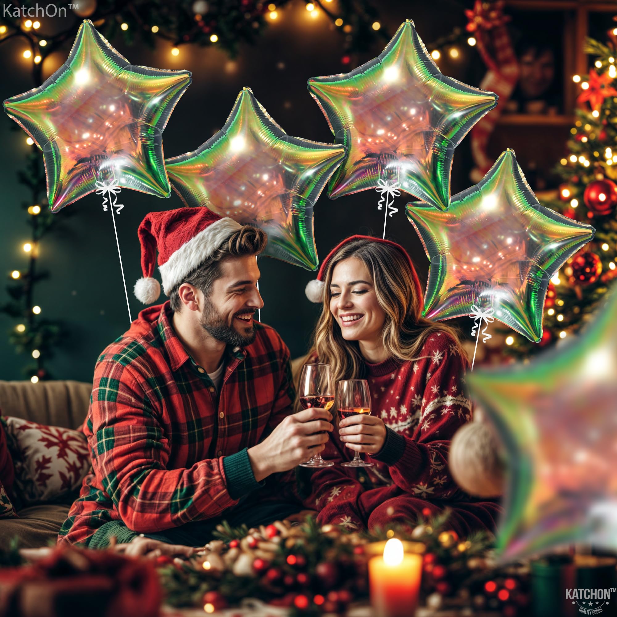 KatchOn, Transparent Iridescent Star Balloons - Big 19 Inch, Pack of 8 | Holographic Balloons, Iridescent Party Decorations | Iridescent Balloons | Clear Star Balloons, Holographic Party Decorations