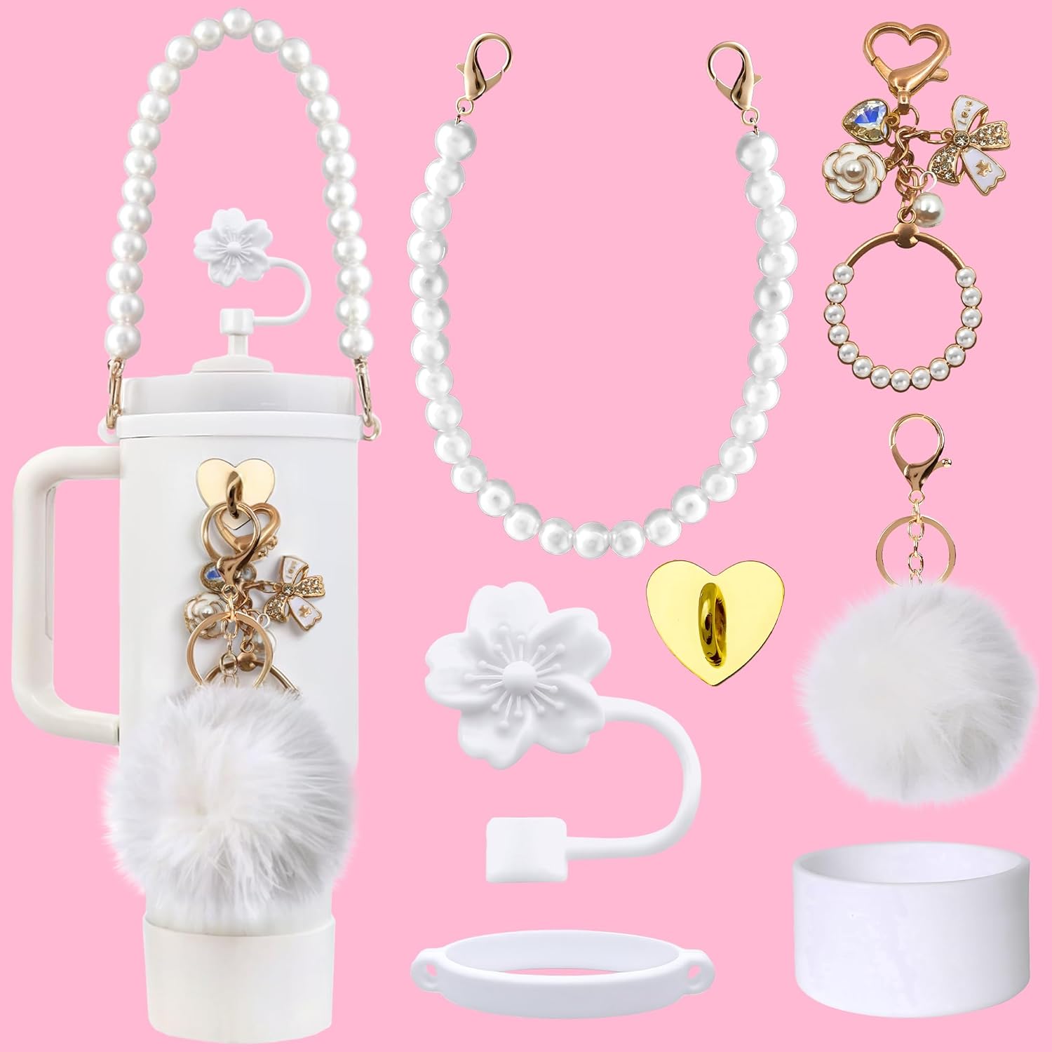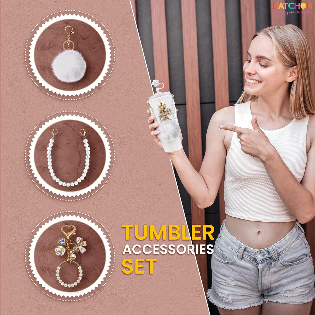 Upgrade your daily hydration routine with the KatchOn Tumbler Accessories Set, a stylish 7-piece bundle designed to add charm, comfort, and personality to your favorite 40 oz tumbler.