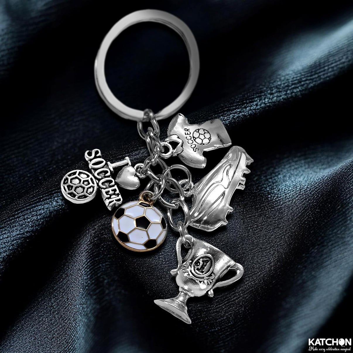 <li><strong>Charming Keychain:</strong> The keychain showcases a range of soccer-themed charms, including a trophy, soccer ball, shoes, and a whistle. It's a stylish, practical accessory for any soccer lover, easily attaching to your keys, bag, or backpack.</li>