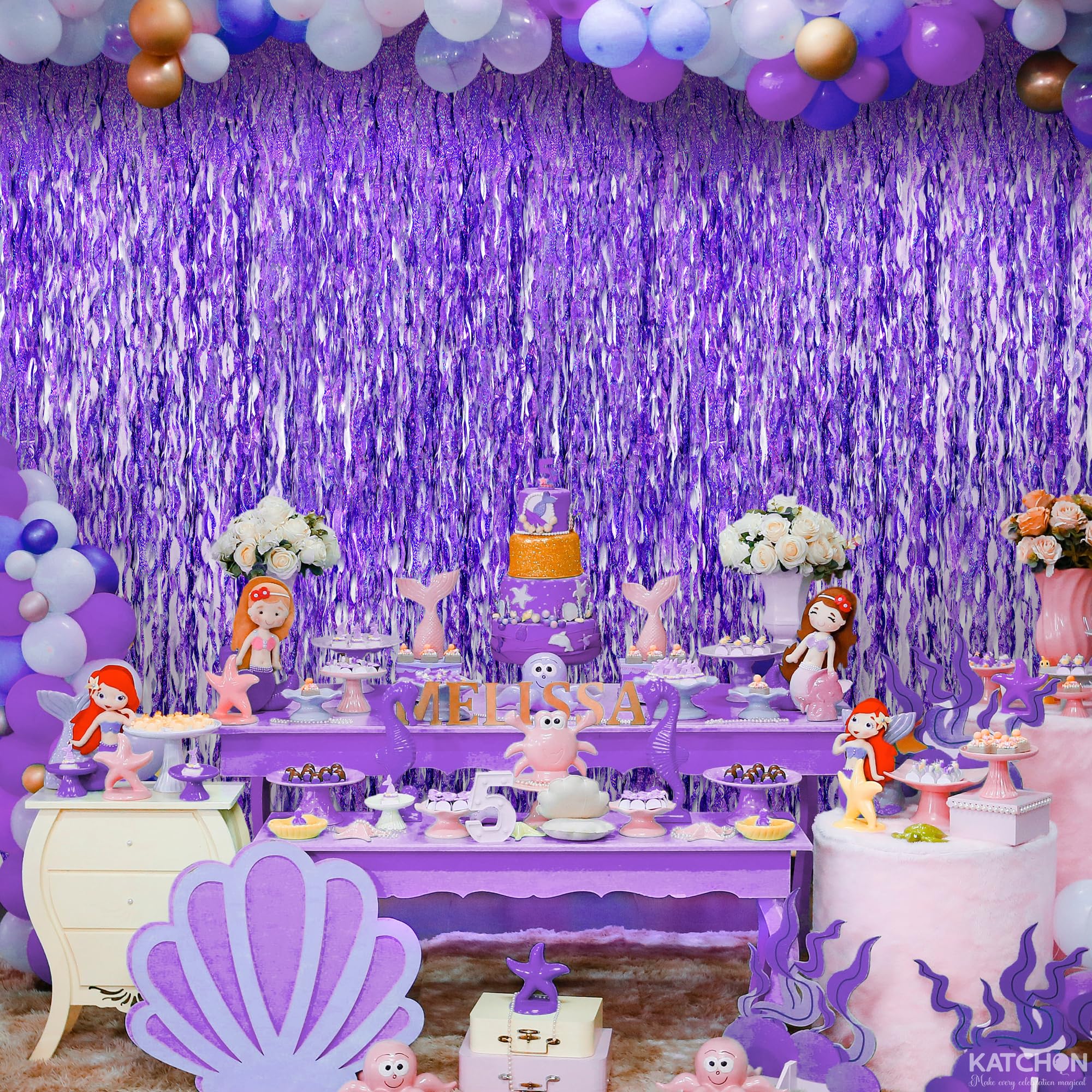 Looking for that wow factor to elevate your under the sea party decorations? This Purple Wavy Foil Fringe Curtain set is just what you need. Whether youre planning beach party decorations, pool party vibes, a dreamy mermaid party backdrop, or even eerie spooky party decorations, this foil curtain blends luxury and fun.