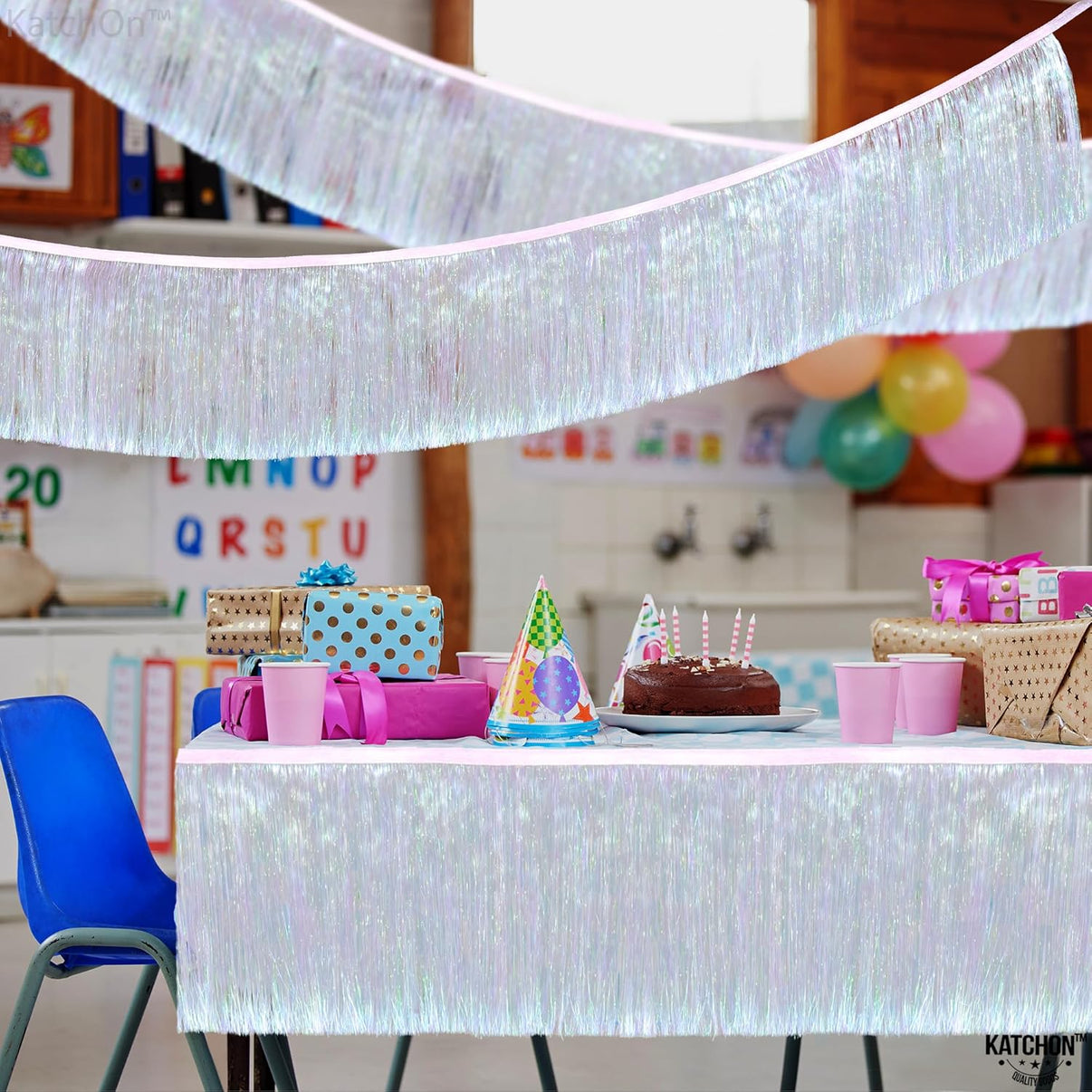 - 4 layers white fringe shorts splendid for room decor for any party! White iridescent fringe banner or iridescent streamers is an elegant and eye-catching decoration that enhances the beauty and atmosphere of christmas decorations indoor. Its sparkling finish and versatile application make it a must-have for those looking to create a memorable and stylish event halloween decor, engagement party decorations, happy new year 2026