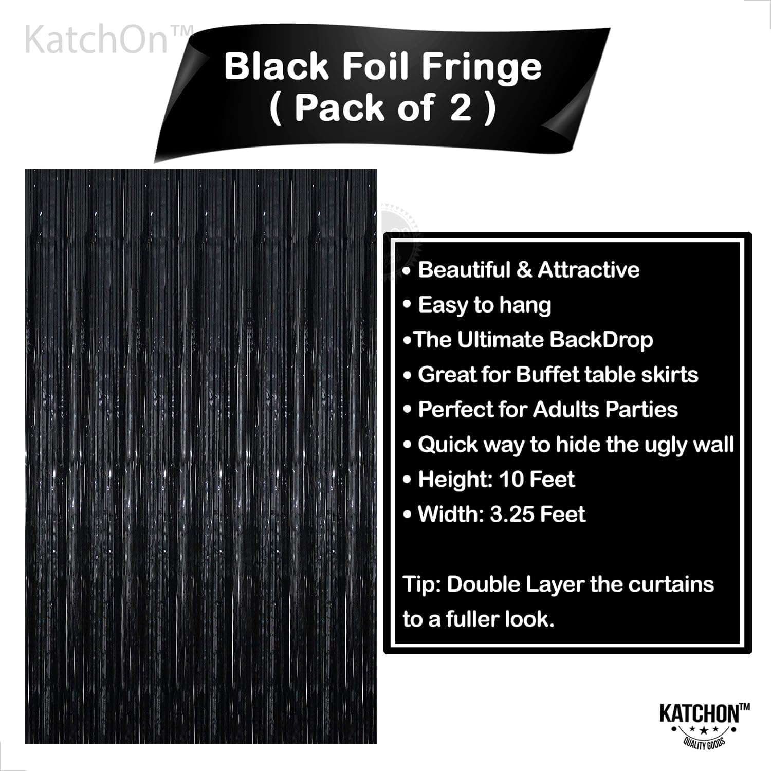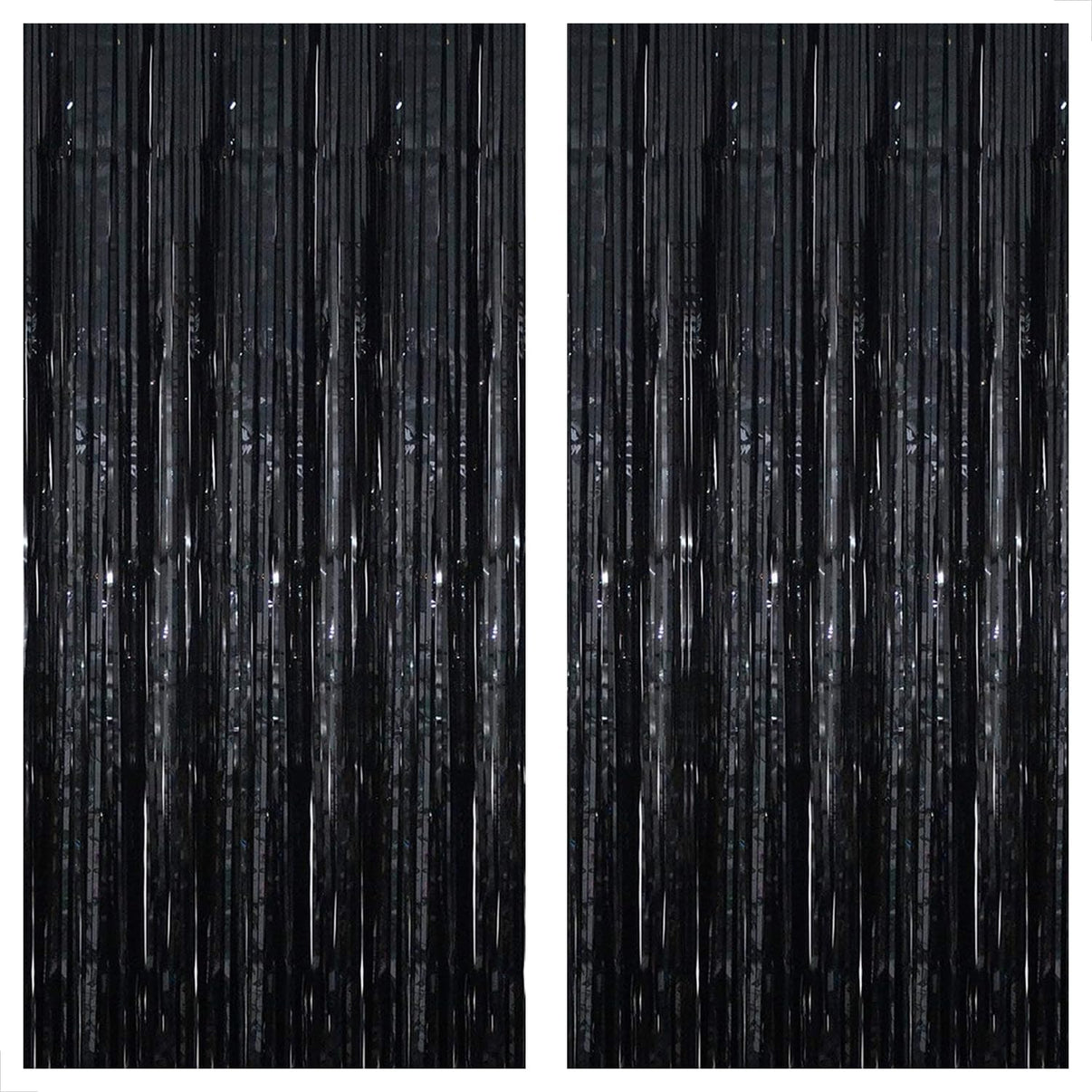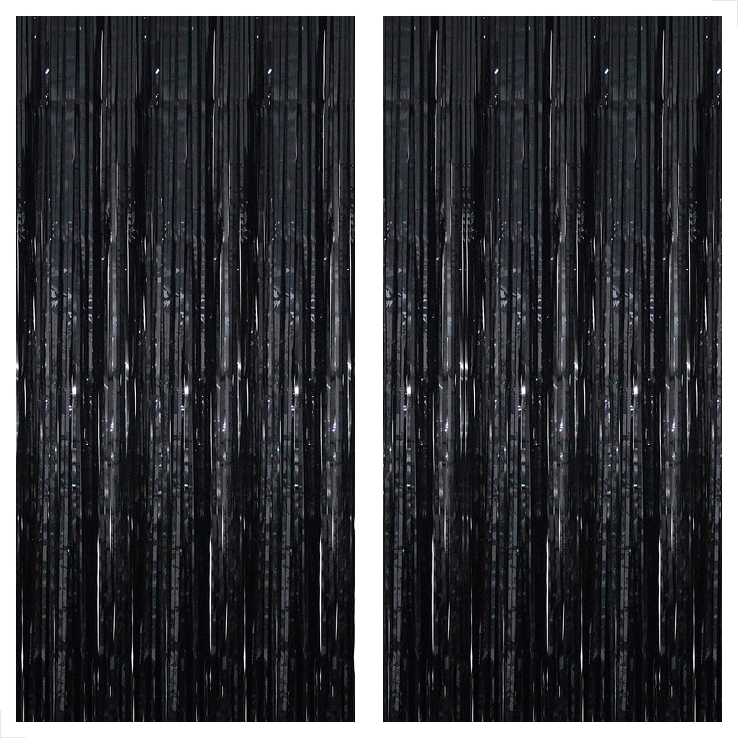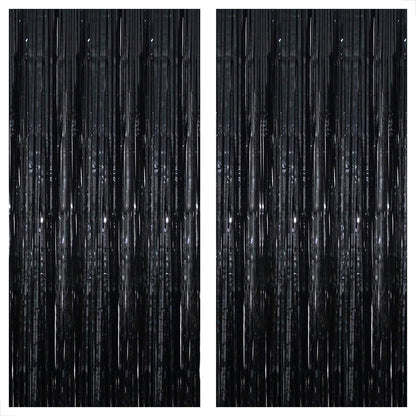KatchOn XtraLarge Black Foil Fringe Curtain - 3.2x10 Feet, Pack of 2 | Black Backdrop for Black Birthday Decorations | Black Tinsel Backdrop | Black Streamer for Graduation Decorations Class of 2024