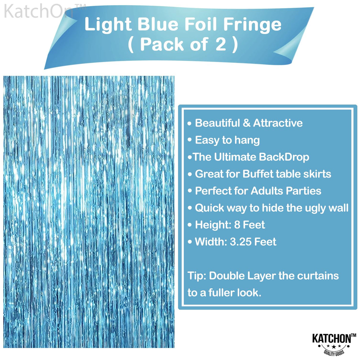 Are you planning to throw a magical kids ocean theme birthday party decorations? Or do you plan to set up elegant blue ocean backdrop decorations for your mermaid birthday party? You can achieve that and more with the beautiful light blue fringe backdrop. This light blue tinsel curtain backdrop is very easy to install. It comes with adhesive strips at the back so all you have to do is hang it up on your walls. With its elegant and grandeur color, this metallic blue streamers backdrop will surely change your ordinary home or office into an extraordinary venue. The cut of the baby blue fringe curtain is wide so it doesnt easily strip down. What you will get: Blue Fringe Curtains 6.4 x 8 feet, Pack of 2 This Foil Fringe Curtain can be a lovely blue foil curtain for your photo booth. Your friends will surely love taking selfies on it. If you dont want to be conventional, Light Blue Foil Fringe Curtain can be out-of-the-box too. With your creativity, you can make unique turquoise tinsel backdrop Use this light blue tinsel backdrop with your imagination and become a trendsetter. Suggested uses: teal tinsel backdrop for mermaid tinsel backdrop blue streamer curtain for party, graduation decorations 2023 The ocean birthday backdrop for Photobooth Blue streamer backdrop party decorations foil fringe curtains party decorations light blue fringe curtain for birthday Blue fringe backdrop for Tiffany blue party decorations These blue tinsel foil fringe curtains backdrop can Re-use several times for variety of occasions Blue streamers for Ocean theme birthday party decorations, tiffany blue curtains decorations Match and pair with other wavy tinsel foil fringe curtain with different colors. This blue tinsel foil curtain is perfect for any party you plan to throw!