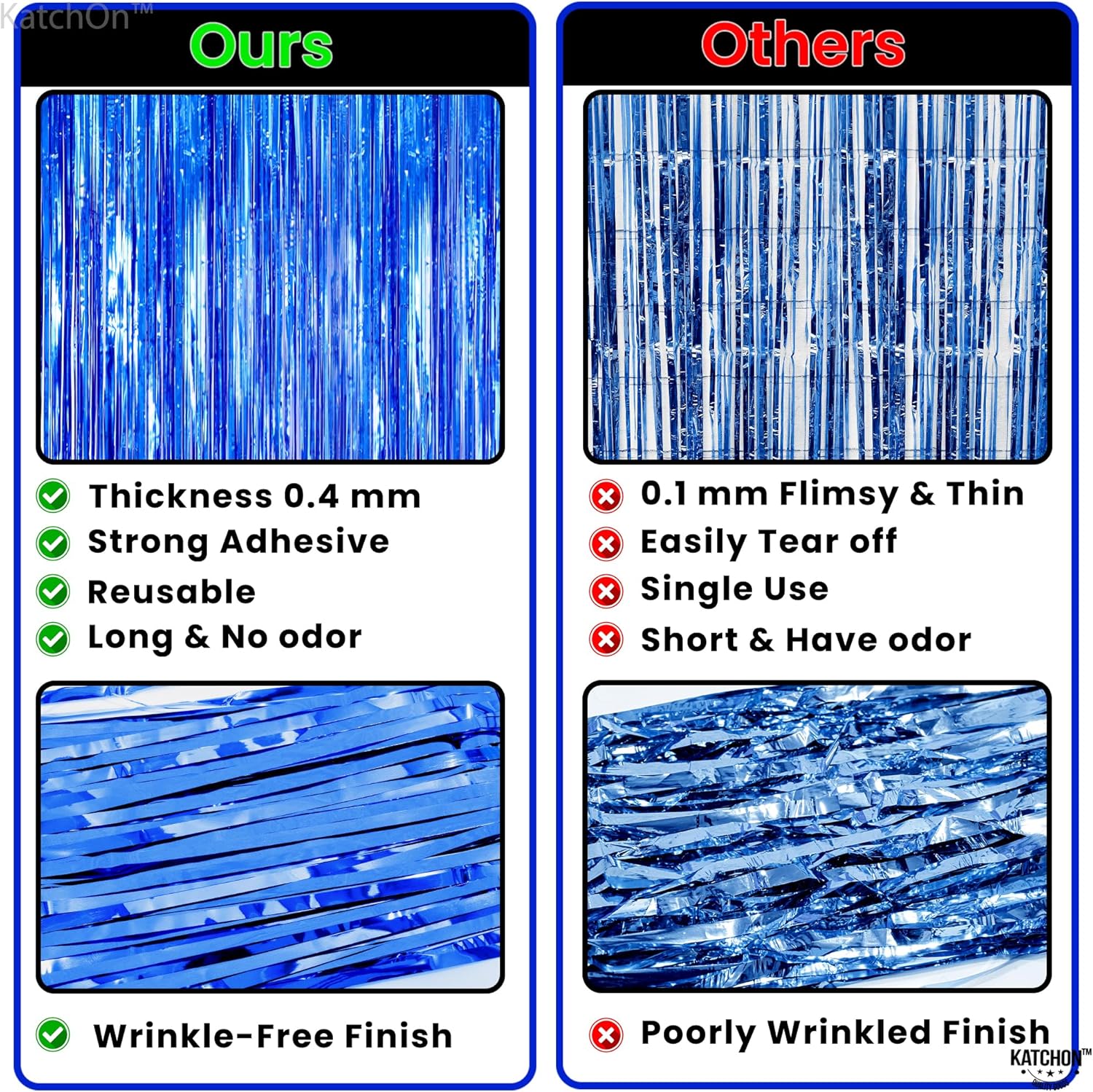 KatchOn Xtralarge Blue Fringe Backdrop - 8x3.2 Feet, Pack of 2 | Blue Streamers, Ocean Themed Party Decorations | Under The Sea Party Decorations, happy new year 2026 |