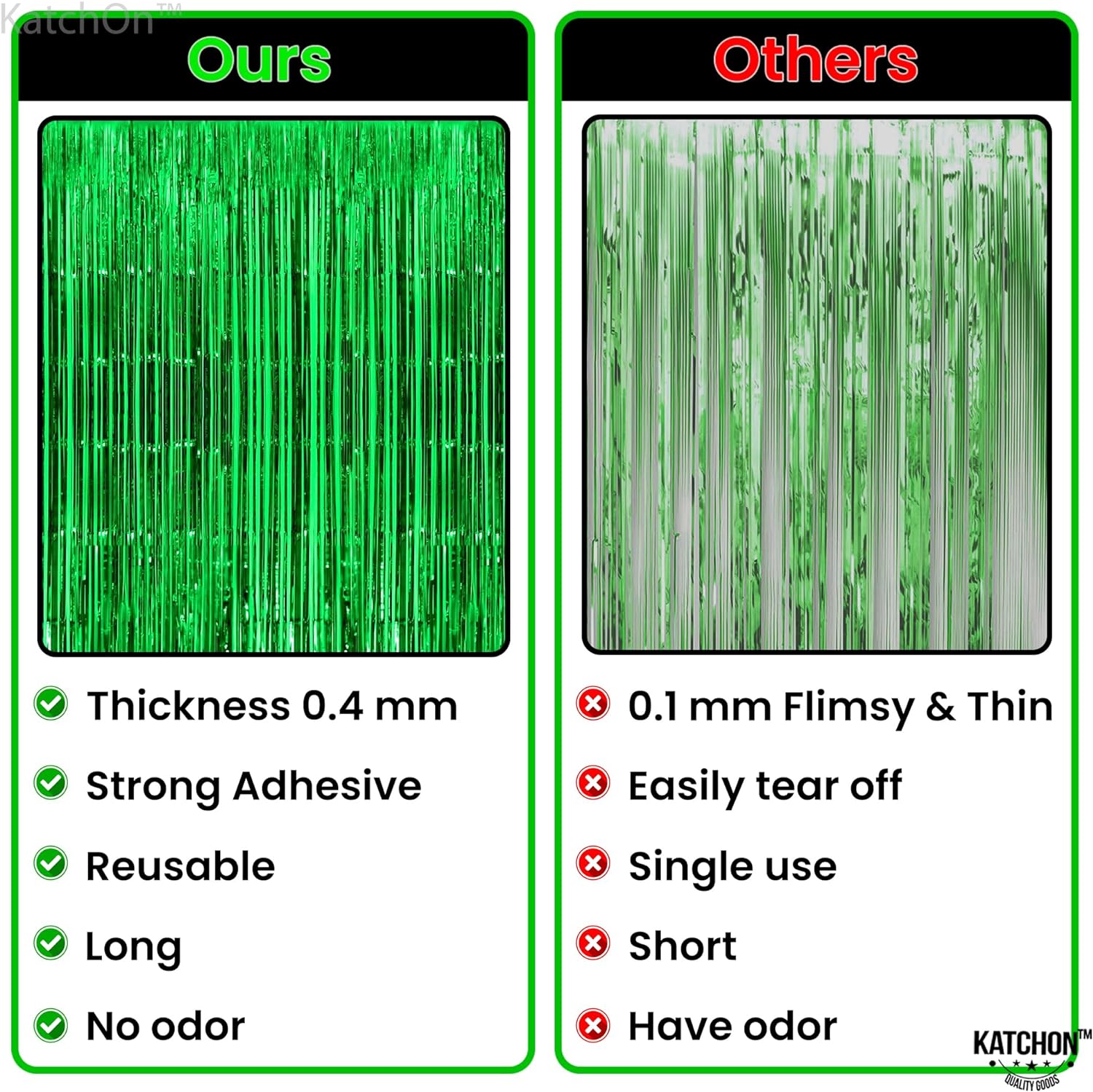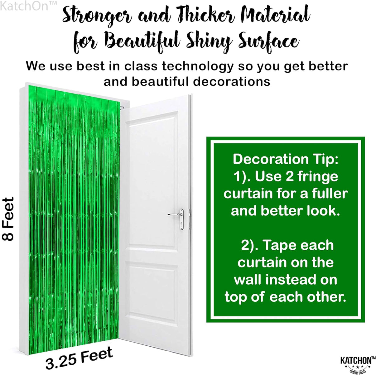 KatchOn XtraLarge Green Streamers Party Decorations - 8x3.2 Feet, Pack of 2 | Green Door Streamers, Jungle Party Decorations | St Patricks Day Decorations | Green Fringe Backdrop, Football Decorations