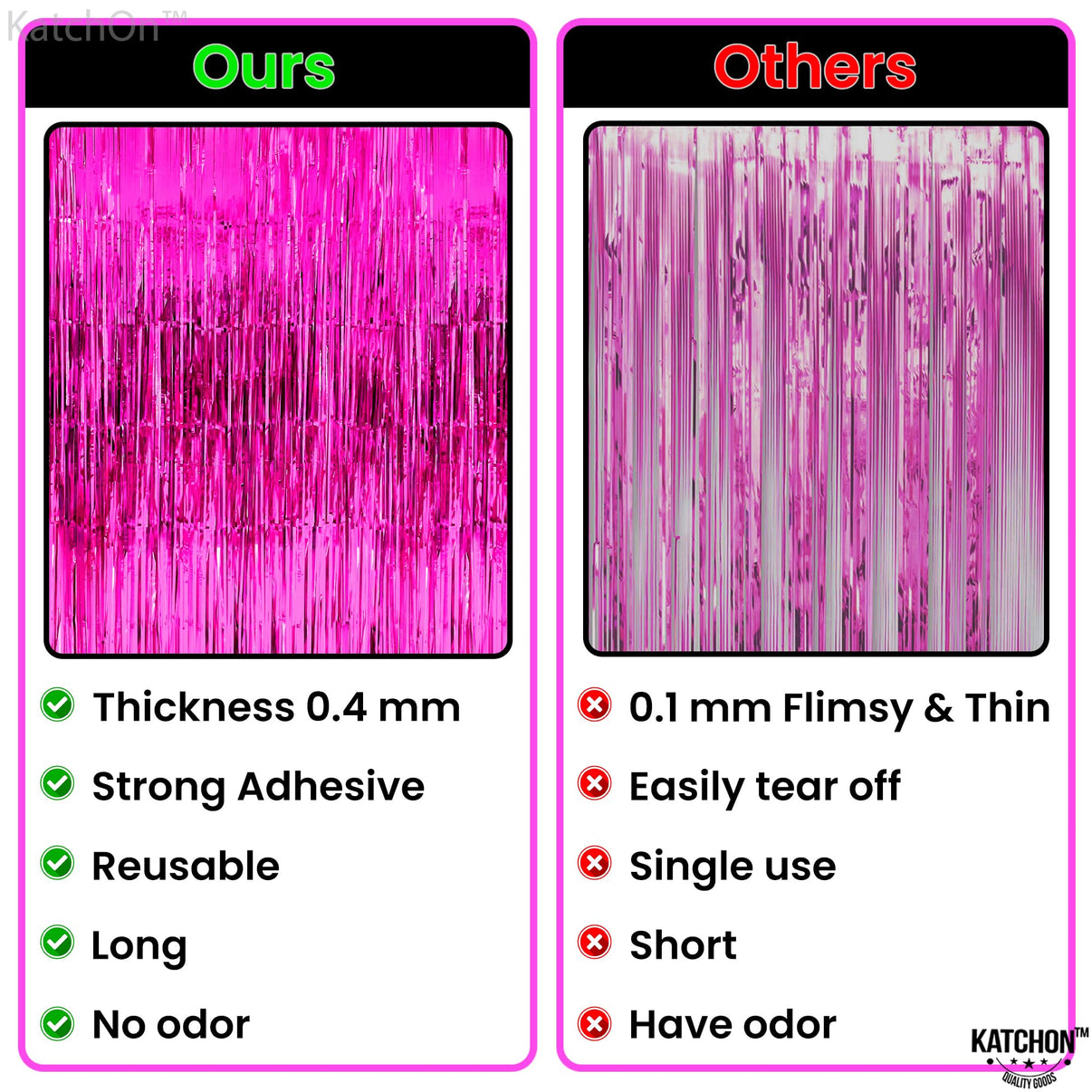 These hot pink foil fringe curtain are very easy to install. neon pink streamers comes with adhesive strips at the back so all you have to do is hang it up on your walls.