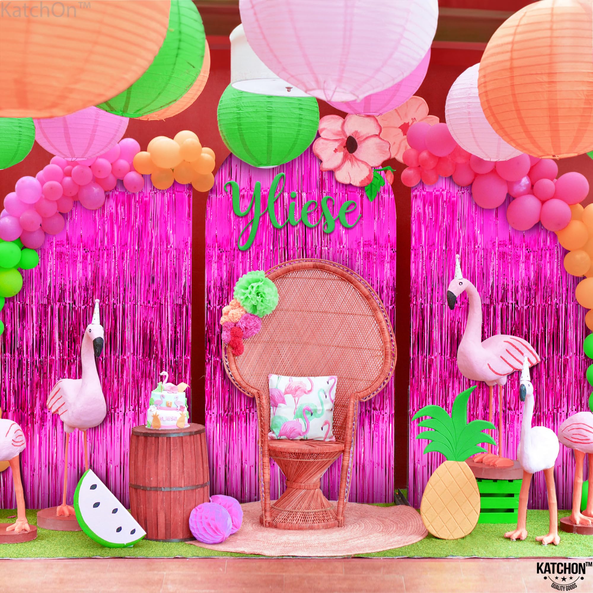 Create DIYs with this hot pink streamer curtain like light hot pink happy birthday banner and Elegant entrance curtain for pink tinsel curtain party backdrop Match and pair with another light pink fringe backdrop or pink backdrop curtains for parties with a different color to achieve the desired color combination in party decorations Pink backdrop, pink fringe backdrop for hot pink decorations for party or pink decor