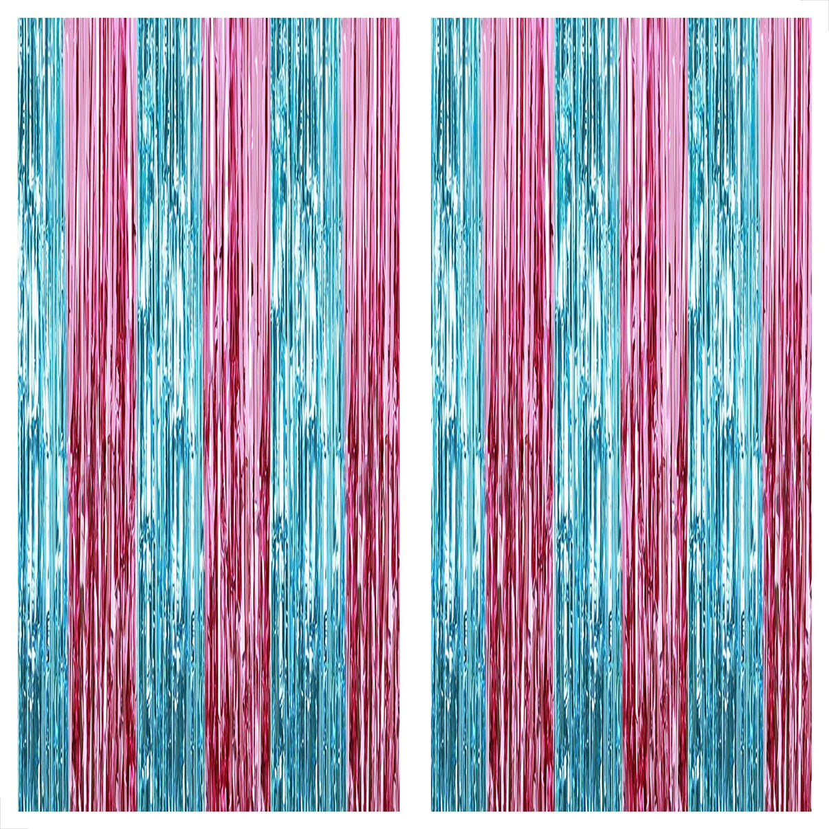 Are you planning to throw a gender reveal party? Or do you plan to set up an elegant blue and pink and blue backdrop curtains for your office anniversary? You can achieve that and more with the Magical pink and blue backdrop gender reveal. With its elegant and grandeur color, these pink and blue streamers will surely change your ordinary baby reveal ideas. The cut of the pink and blue fringe curtain is wide so it doesnt easily strip down. What you will get: 1) Pink and blue backdrop curtains Foil Fringe 3.2 x 8 foot, Pack of 2 This blue and pink foil curtain can be a lovely blue and pink gender reveal decorations. If you dont want to be conventional, pink and blue fringe backdrop can be out-of-the-box too. With your creativity, you can make unique pink and blue tinsel backdrop themes like, pink and blue curtains for gender reveal, football themed gender reveal backdrop, etc. Innovate this gender reveal back drop with your imagination. Suggested uses: - gender reveal streamers for gender reveal foil backdrop boy or girl - blue and pink fringe curtain, Gender reveal backdrop Curtain for hot pink and blue party decorations, pink and blue candy gender reveal decor -blue and pink streamers for blue and pink party decorations - pink and blue birthday decorations - Prince or princess gender reveal backdrop - pink and blue decorations or gender reveal fringe curtain for pink and blue party decorations - pink and blue streamers gender reveal - Create beautiful gender reveal curtain backdrop with this pink and blue foil curtain - Match and pair with our pink and blue foil fringe curtain with different colors. This blue and pink backdrop curtain for gender reveal backdrop boy or girl is perfect for any other party! So what are you waiting for? Click Add to Cart and make your hot blue and pink decorations memorable with our metallic fringe curtains pink and blue. Place your order now!