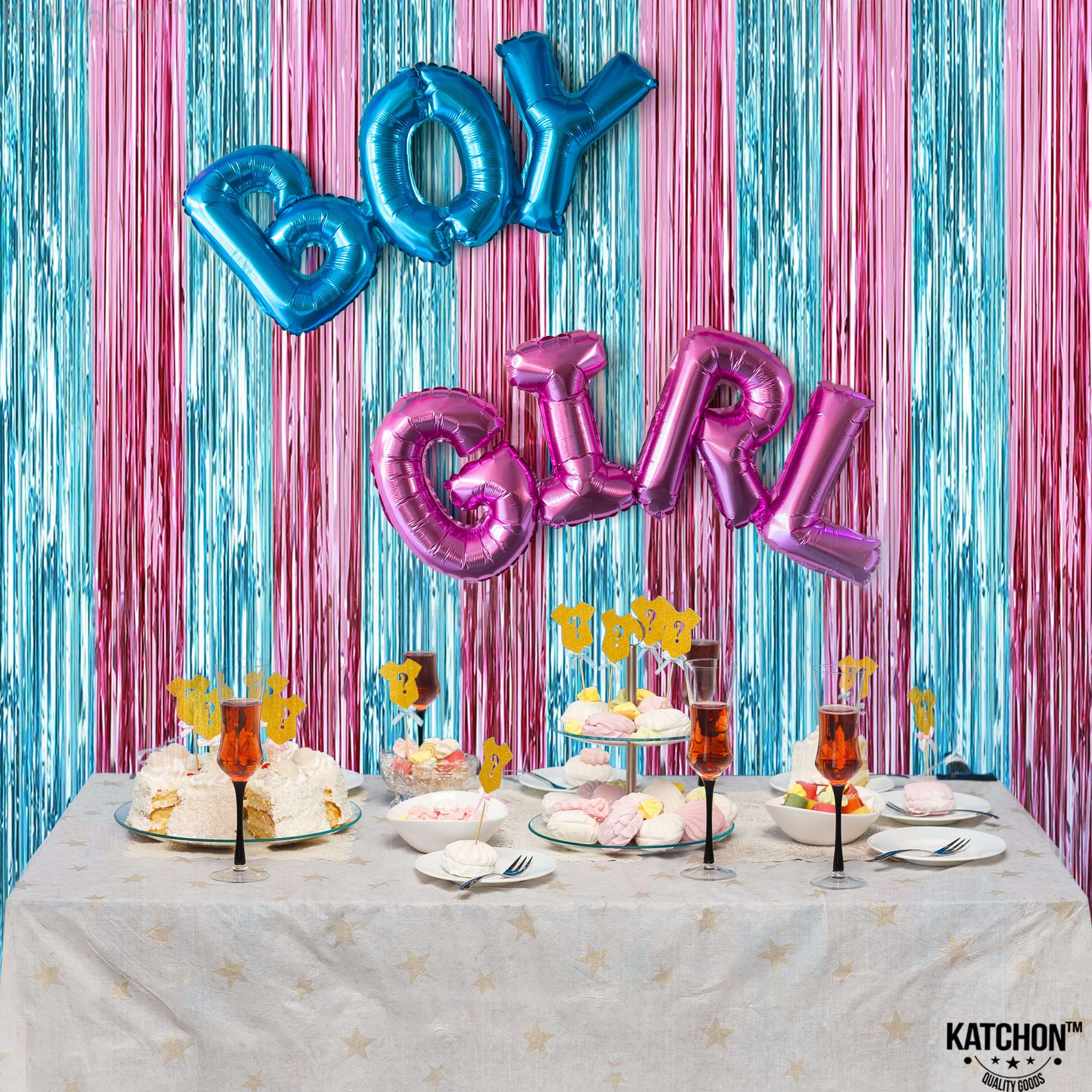 KatchOn, XtraLarge Pink and Blue Streamers - 8x3.2 Feet, Pack of 2 | Gender Reveal Decorations | Baby Gender Reveal Backdrop Boy or Girl | Pink and Blue Backdrop for Pink and Blue Party Decorations