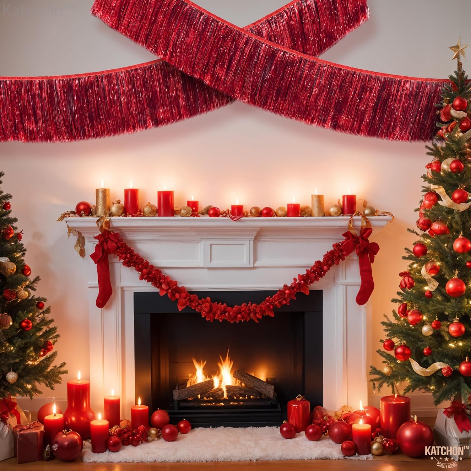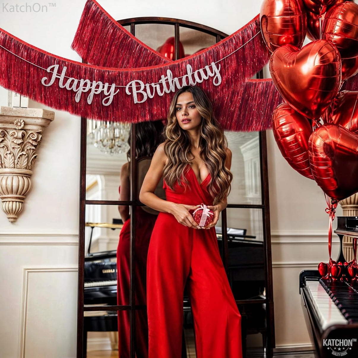 KatchOn, XtraLarge Red Fringe Banner - Pack of 2 | Ceiling Tinsel for Red Streamers Party Decorations | Streamers for Cherry Party Decorations, Bridal Shower Decor, Halloween, Christmas Decorations