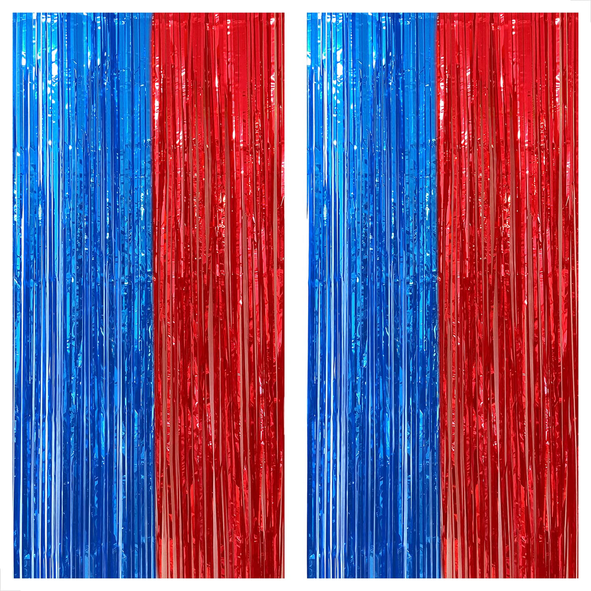 1) blue Red Foil Fringe Curtain ; 6.4x8 Feet (Total Dimensions), Pack of 2