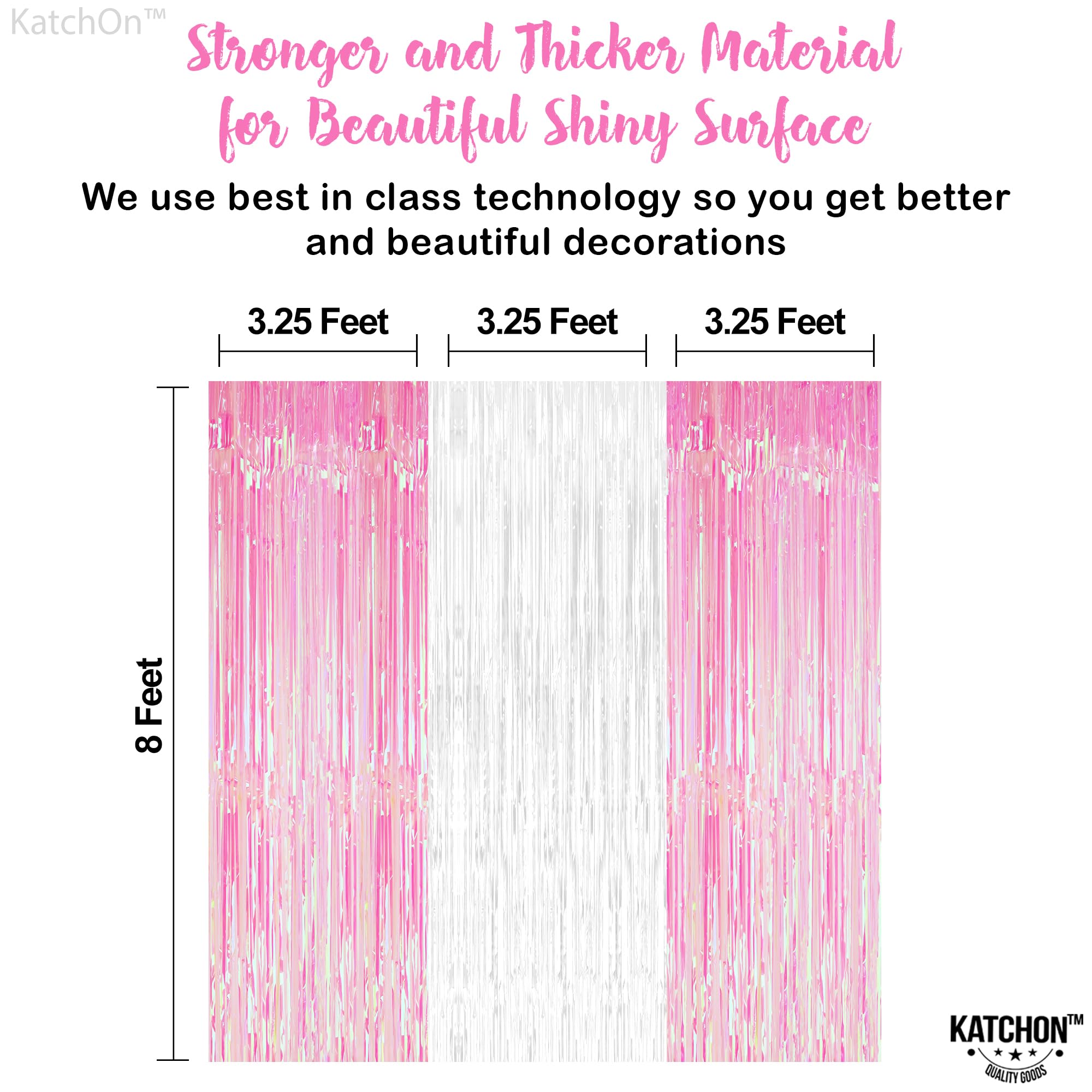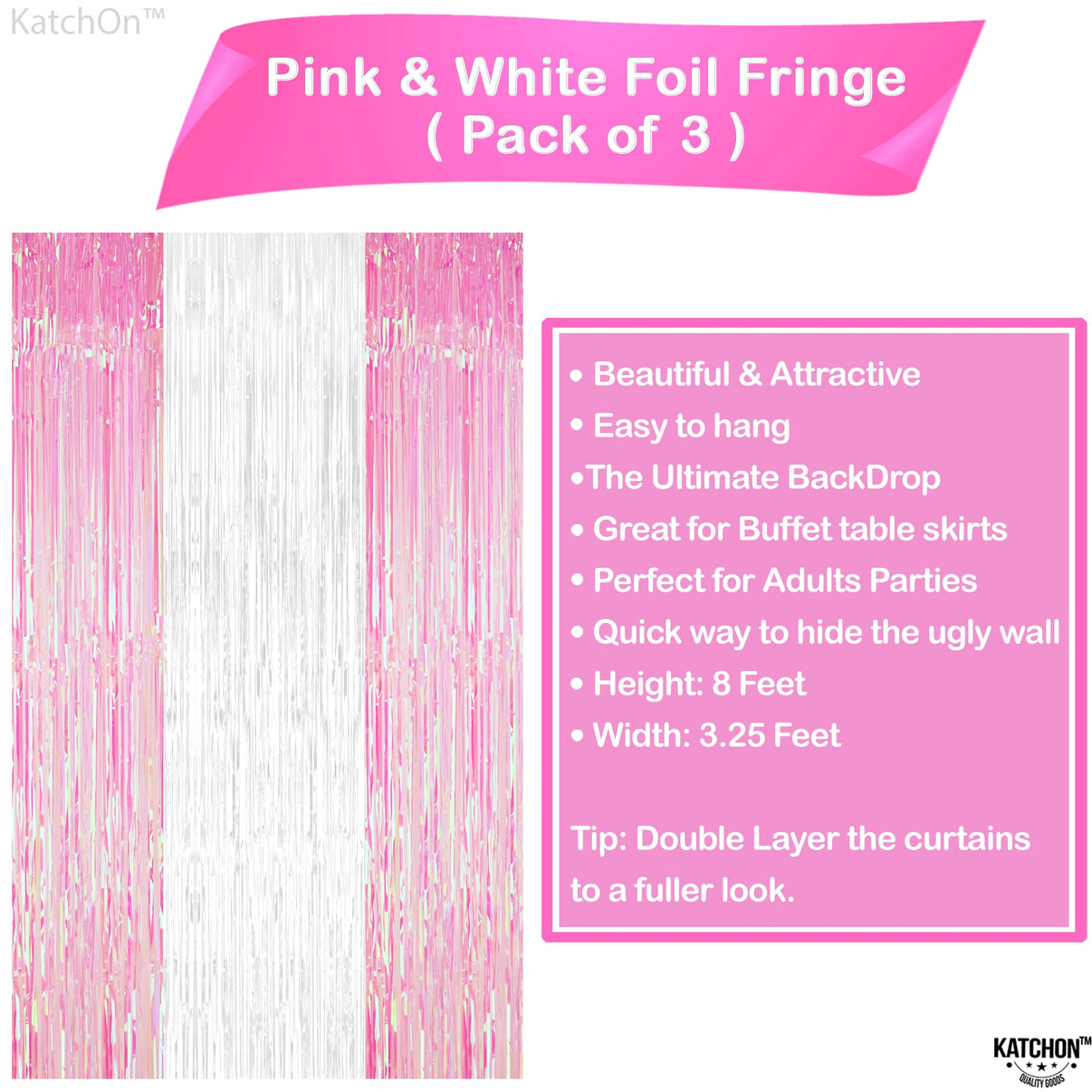 Are you planning to throw a romantic-effect white and pink party decorations? You can achieve that and more with the xtralarge 3.2x8 feet white and Pink Foil Fringe Curtain.