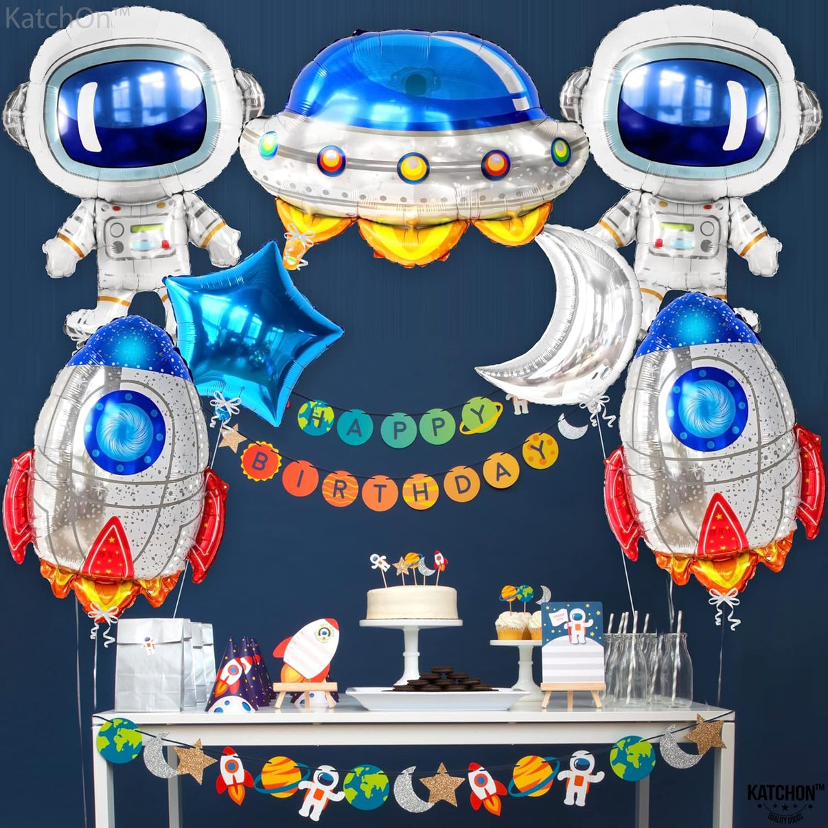 KatchOn, Large Astronaut Space Balloons Set - 37 Inch, Pack of 7 | Space Themed Balloons for Space Themed Party Supplies | Space Birthday Balloons | Astronaut Balloons for Space Birthday Decorations