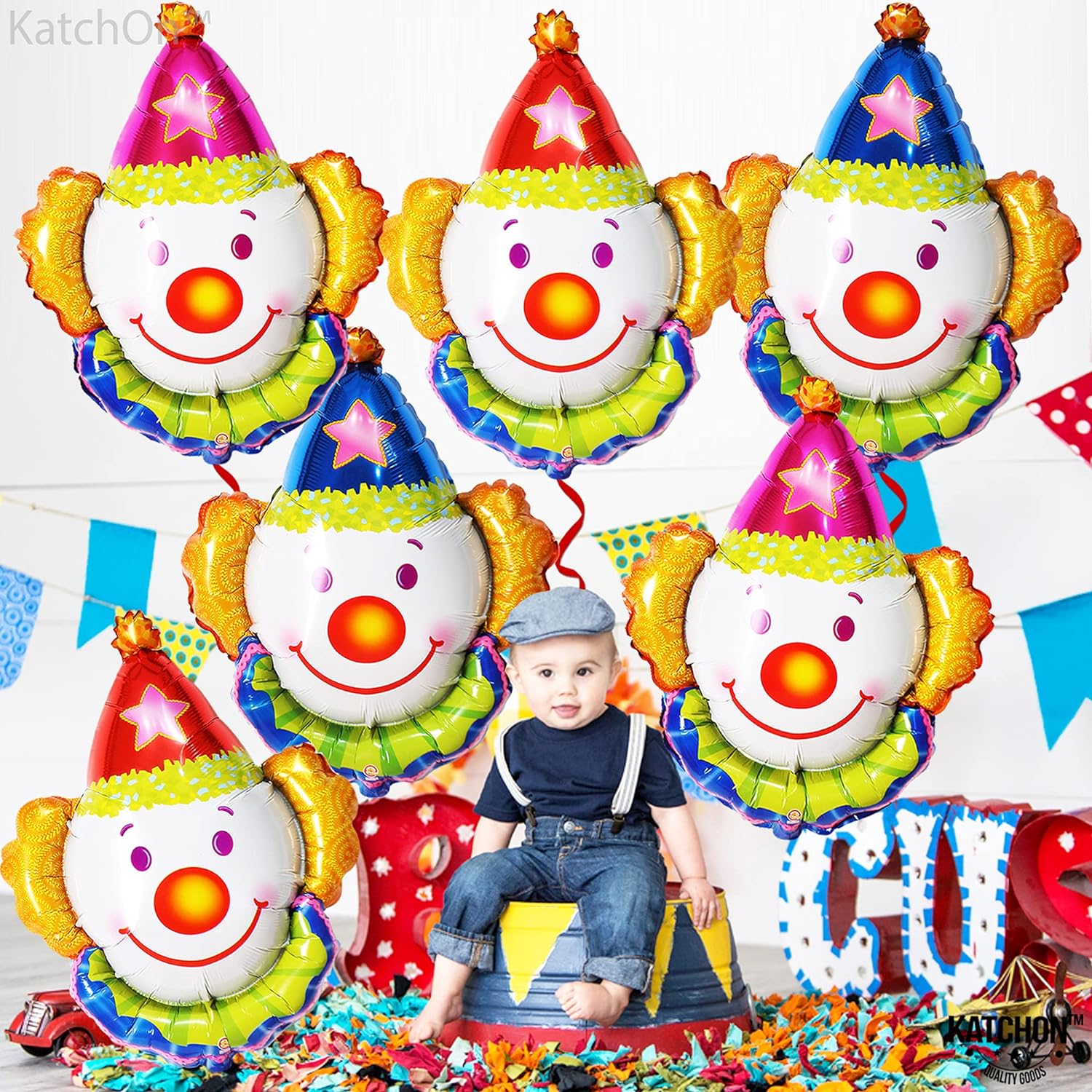 KatchOn, Large Clown Balloons Set - 32 Inch, Pack of 6 | Carnival Balloons for Clown Decorations | Clown Head Balloons for Circus Theme Party Decorations | Circus Balloons, Clown Party Decorations