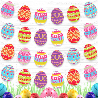 CUTE AND COLORFUL EGG GARLAND FOR EASTER : Celebrate Easter in style with our easter garland decorations, featuring 24 lively cutouts in 6 prints. This easter decorations is made of sturdy card stock and double-sided printed in vibrant colors. These banner add a festive touch to create a cheerful environment for your easter wall decorations, happy easter banners for front door and easter classroom decorations. Elevate your celebration with these charming easter banner decorations.