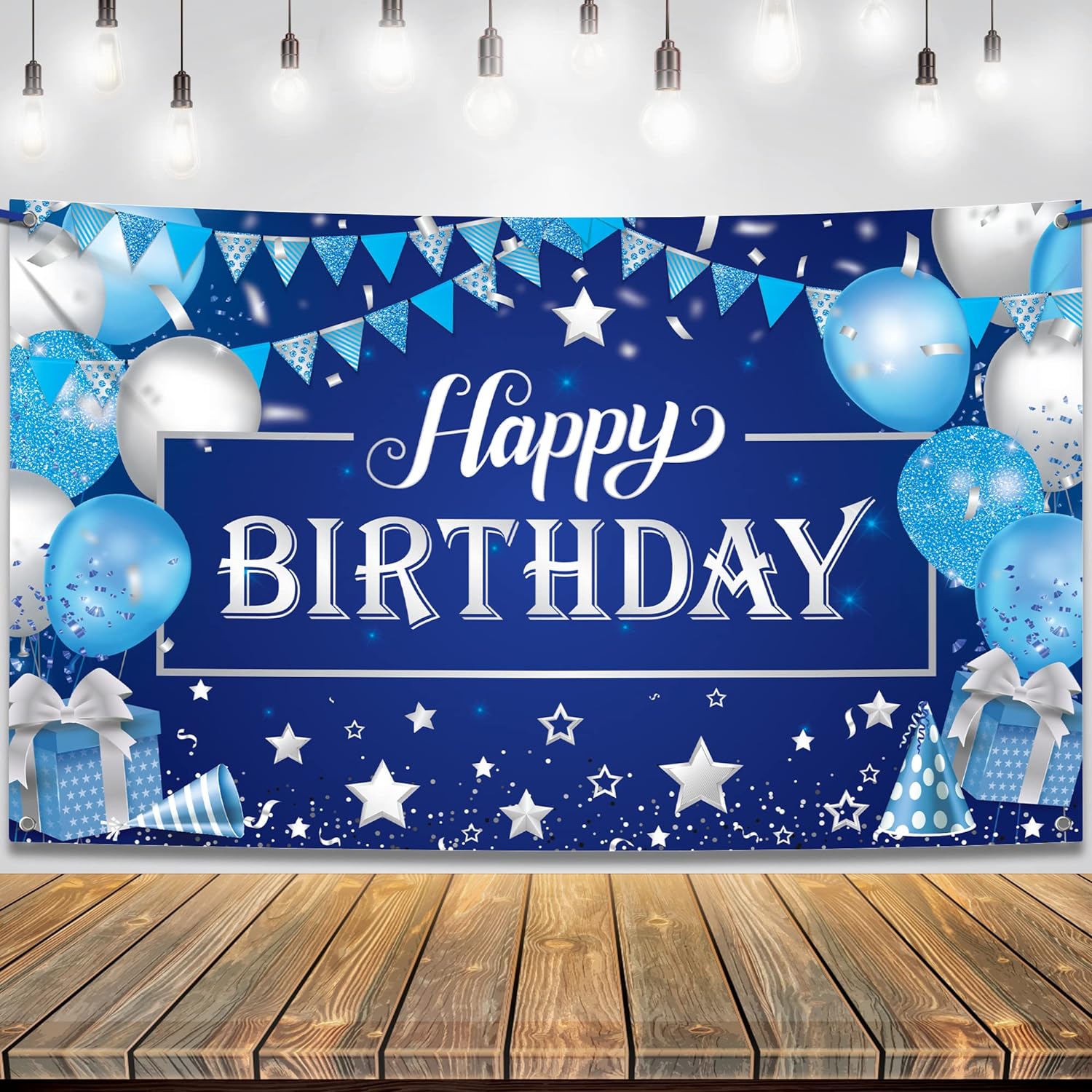 BEAUTIFUL TOUCH OF SHINNING BIRTHDAY BANNER : Set up a fun drive by silver and blue happy birthday banner for men and women is an eye-catching decoration above your cake table, centerpieces, or use happy birthday wall backdrop boy and girl anywhere you want to hang it as background banner Make a special occasion. You can Mix match with blue happy birthday backdrop and balloons arch set to make your party set-up more wonderful.